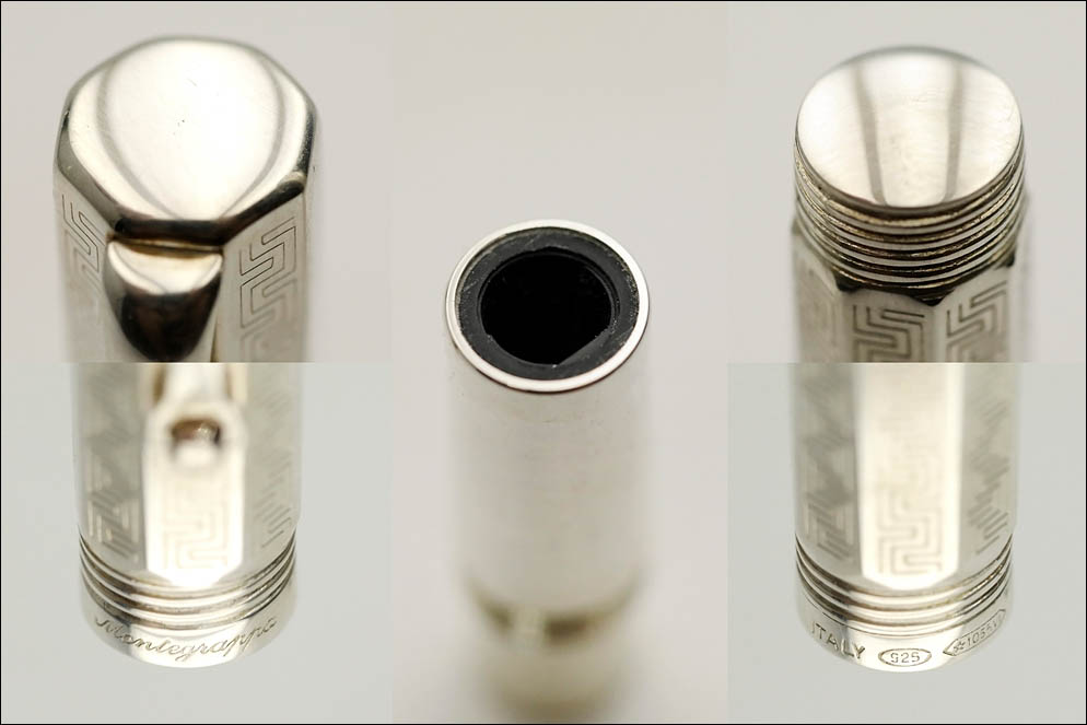 На все части ручки нанесены: клейма стерлингового серебра — 925 в овале, клейма ювелирного дома Montegrappa — ✩1055VI (до’Richemont’овский период 2000-2007), страна производства — Italy. На нижней части колпачка — имя компании Montegrappa, написанное традиционно курсивом.