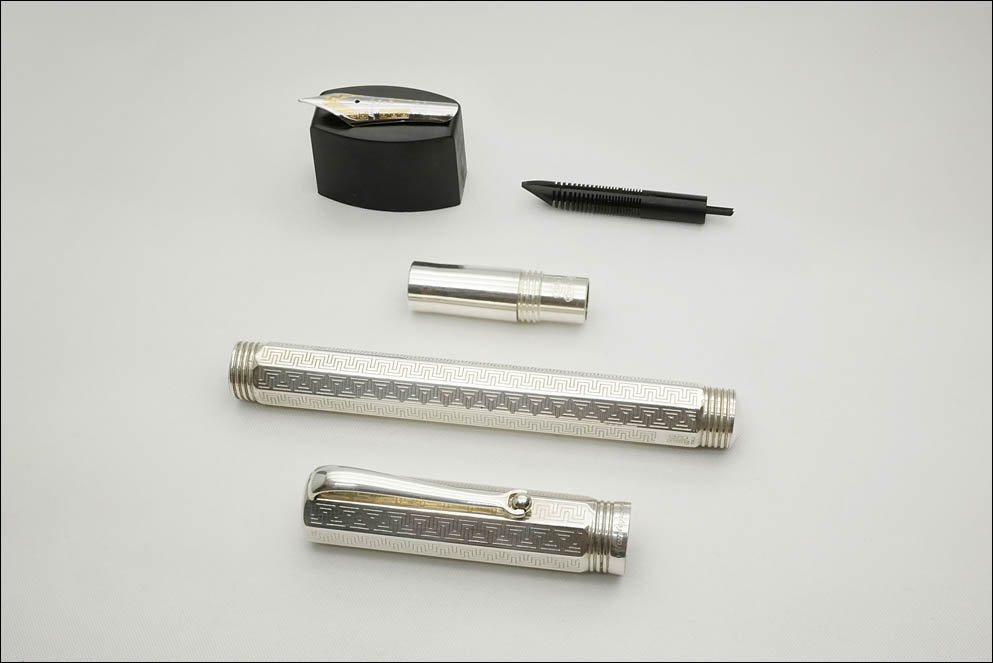 Корпус и колпачок (кроме одной грани, предусмотренной для персонализации) украшены греческим узором (Palladio).