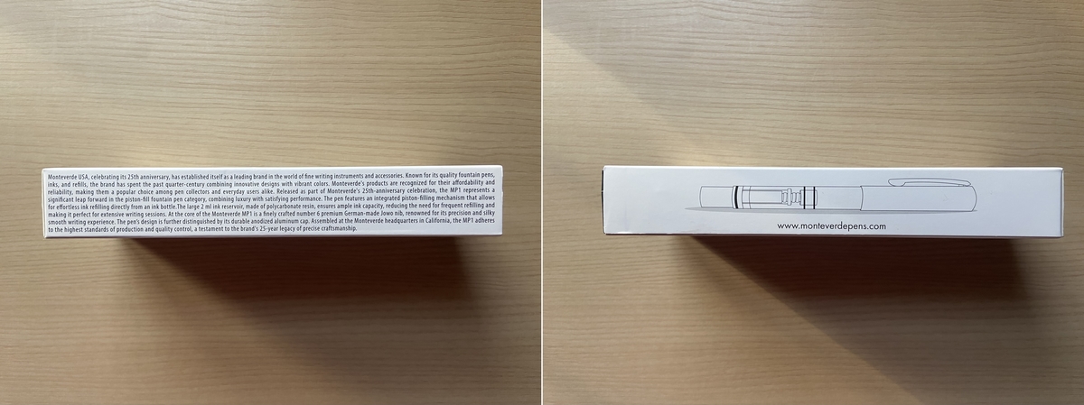 На одном из торцов информация о ручке и юбилее компании, на другом — вновь MP1, но уже в закрытом состоянии.