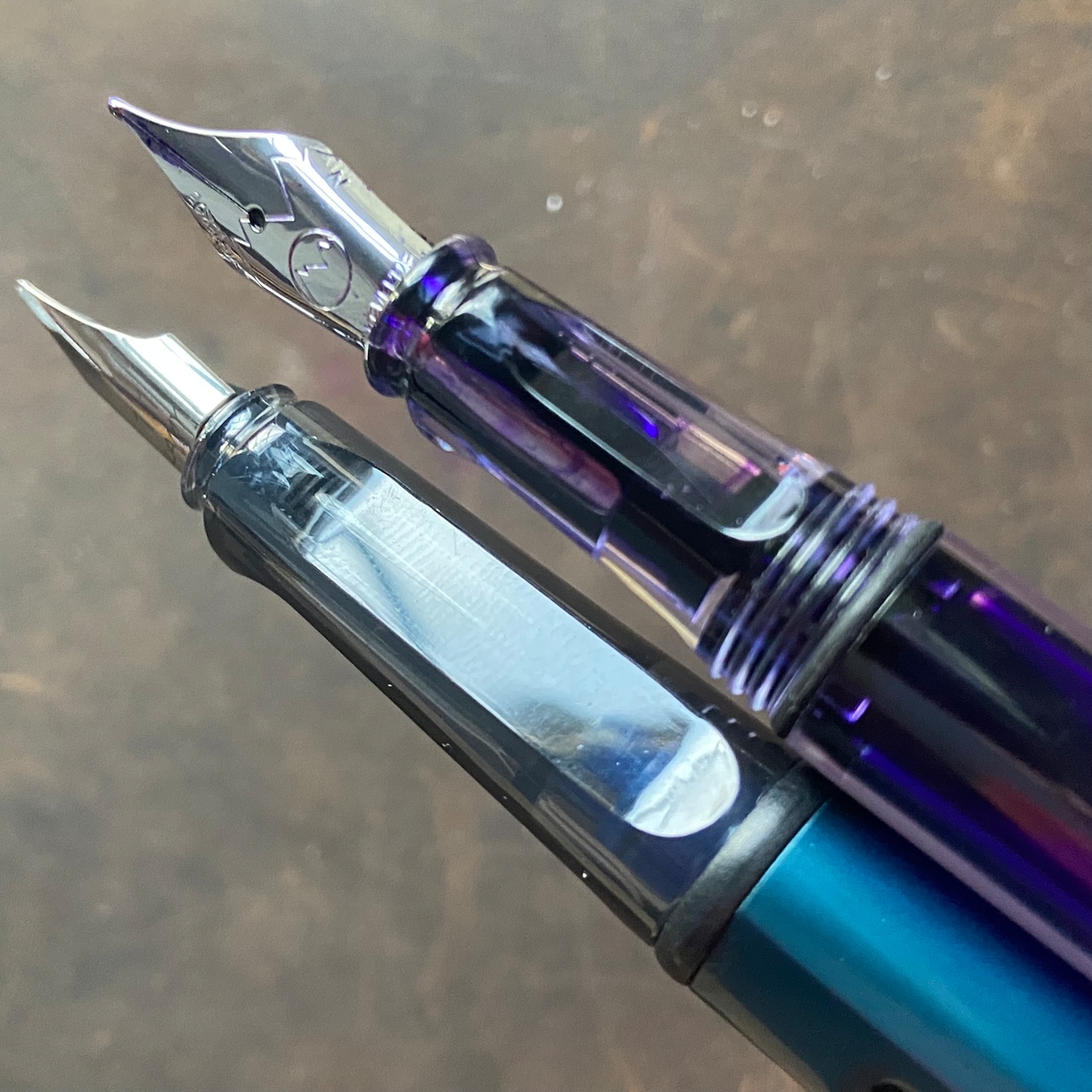 Так выглядят треугольные грипы под углом у Monteverde MP1 и Lamy Al-Star (слева), у героини обзора он кажется менее «агрессивным»: