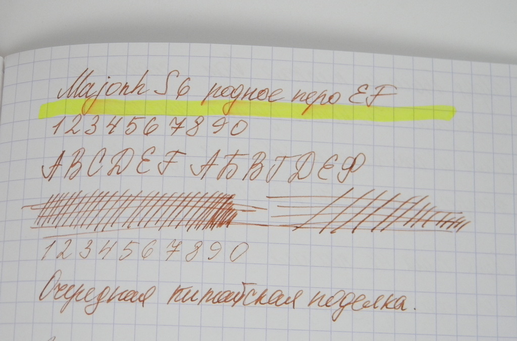 Родное мягче Pilot’овского, но на этом все преимущества заканчиваются. К указанному размеру плюсуем один. При использовании более жидких чернил ручка льёт.