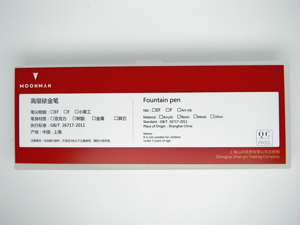 Итак, китайское Pilot’оподобное перо с эмблемой Moonman (перо в круге с каплей чернил) и размерами EF, F.