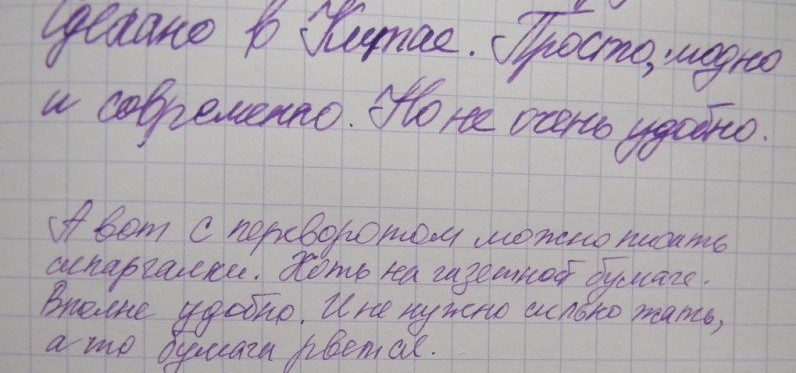 В общем, по сравнению с той же Jinhao 86, как ломом по воде. Но мне удобно писать, перевернув перо.