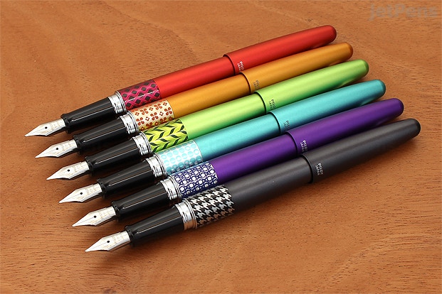 При этом Pilot Cocoon и Metropolitan — это стопроцентные близнецы. А вот Pilot MR имеет ряд отличий: продаётся без конвертера и принимает стандартные International-картриджи/конвертеры (в то время как Pilot Cocoon/Metropolitan — только родные пилотовские). Если я не ошибаюсь, независимо от рынка все перья обозначены в японской системе.