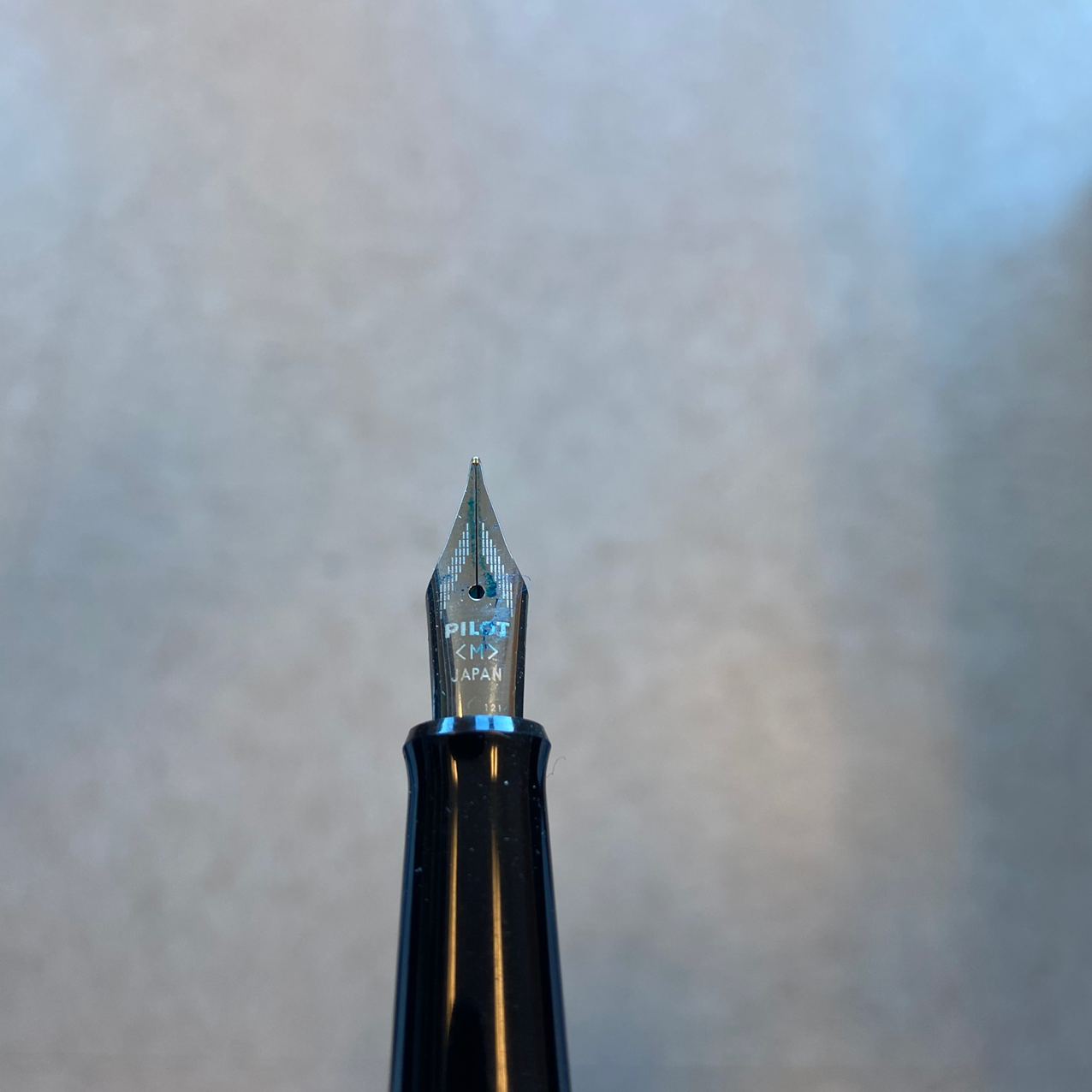 Стальное перо выглядит изящно и элегантно. На поверхности выгравированы имя компании-производителя (Pilot), толщина (M) и страна производства (Japan).