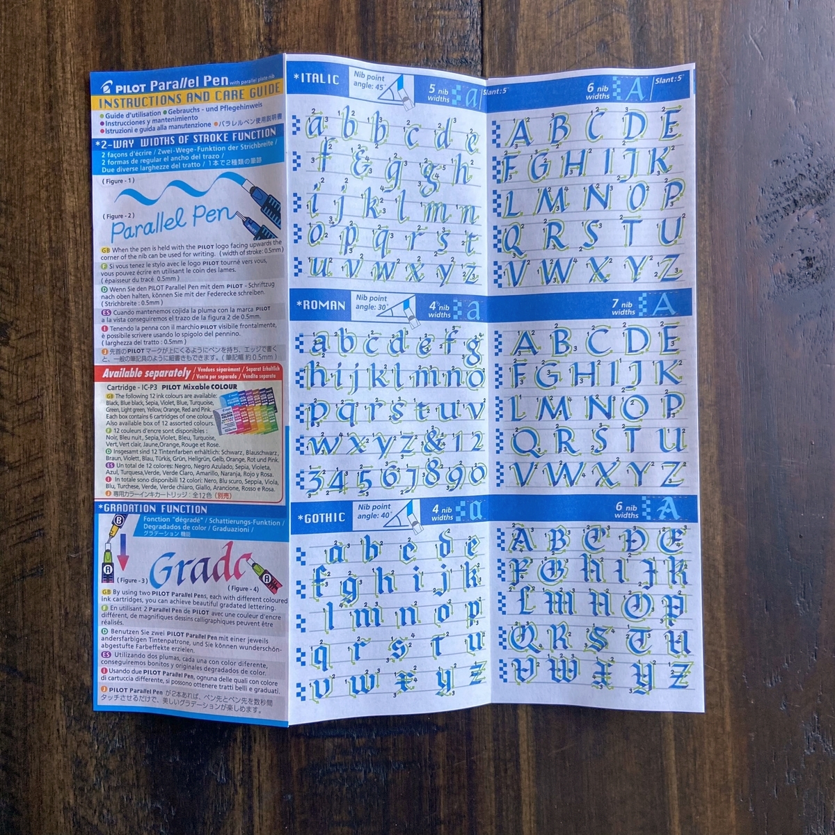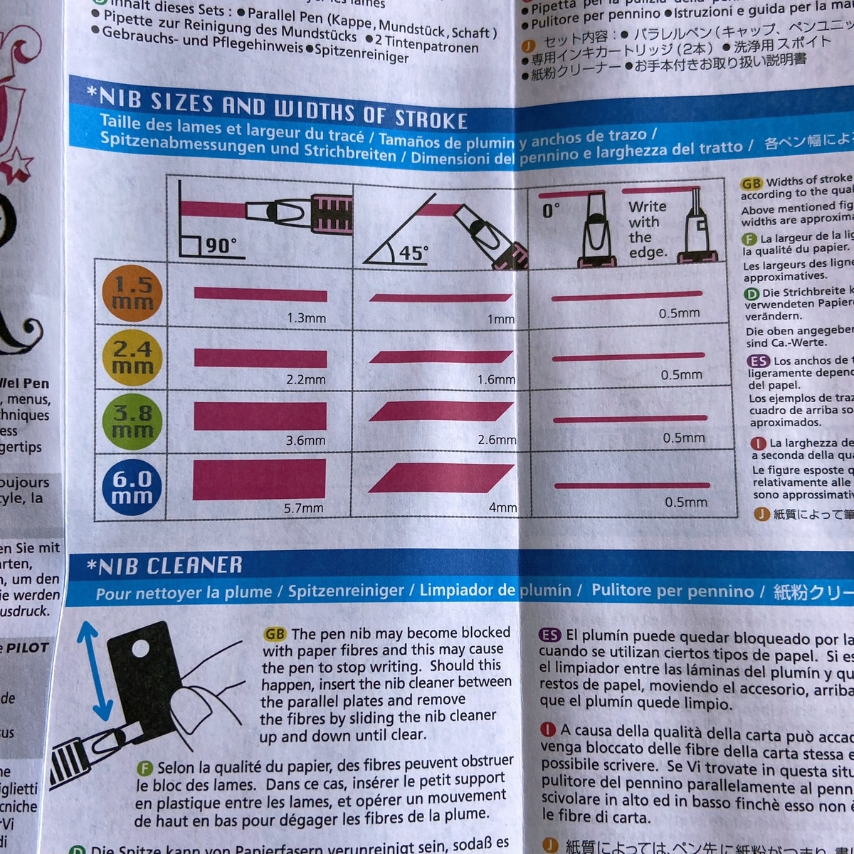 Инструкция вложена наиподробнейшая (ещё и цветная!): рассказывает, из каких деталей состоит ручка, как её обслуживать, как ею писать, знакомя даже с различными шрифтами (назовём это азами каллиграфии/леттеринга, ага).