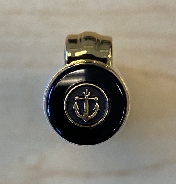 Хорошо отполировано. На поверхность нанесены год основания компании, логотип (всё тот же якорь), каратность и название бренда.
