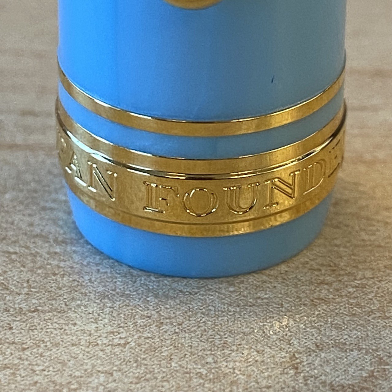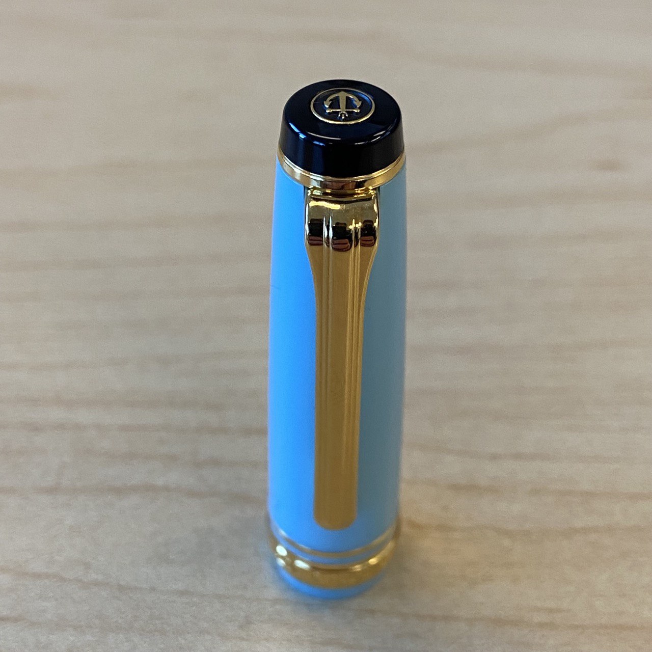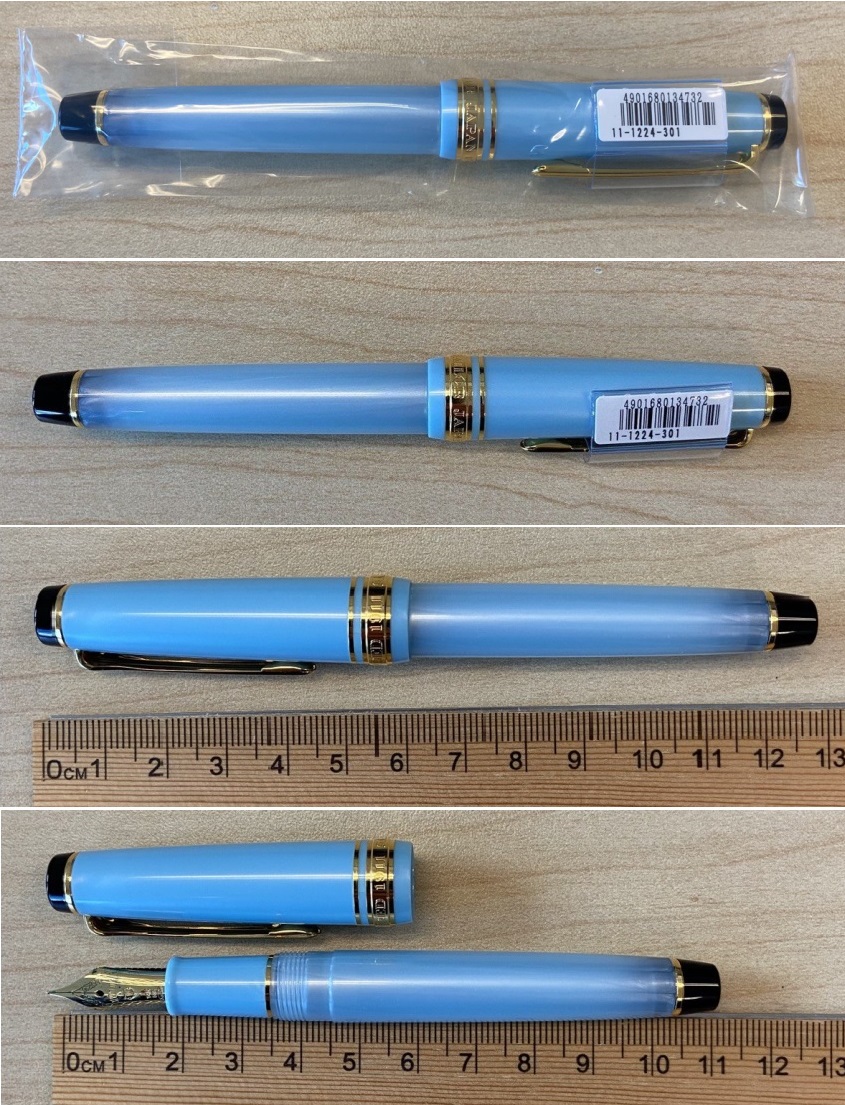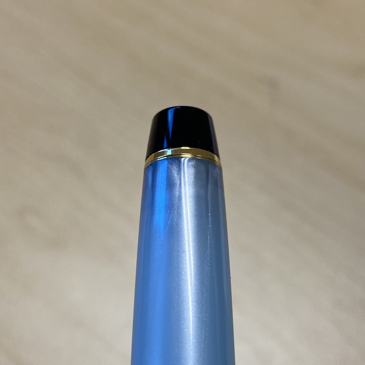Рассмотрим сам инструмент поближе. Пластиковый корпус. Приятная — действительно небесно-голубая — расцветка. Позолоченные элементы. Выглядит эффектно! По размерам ручка небольшая.
