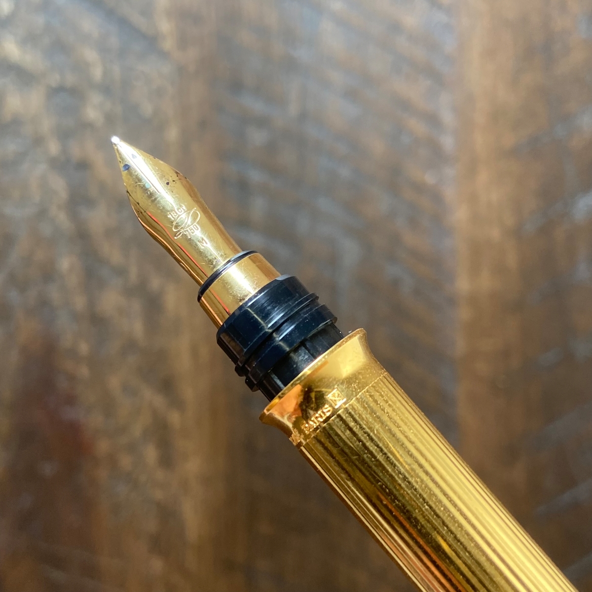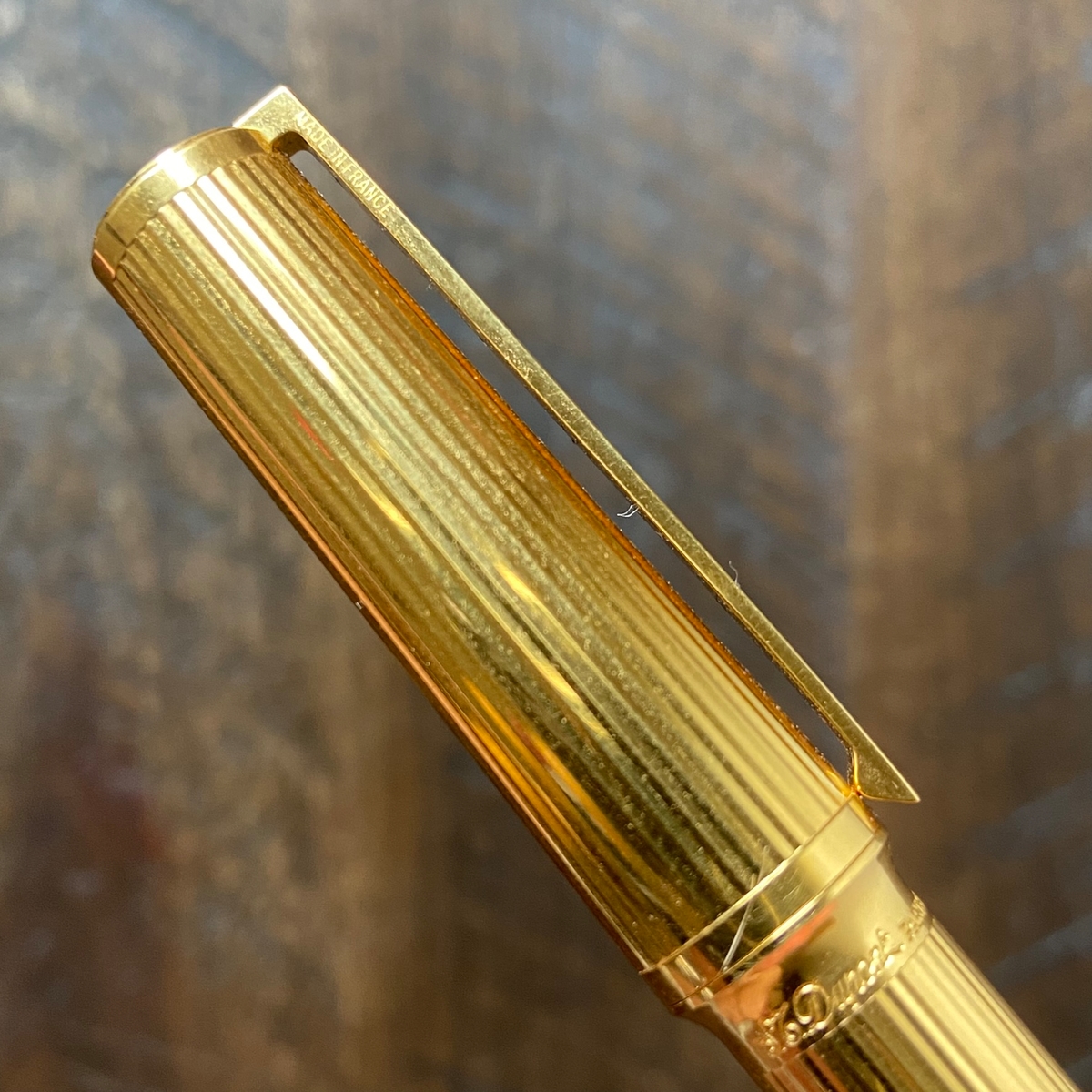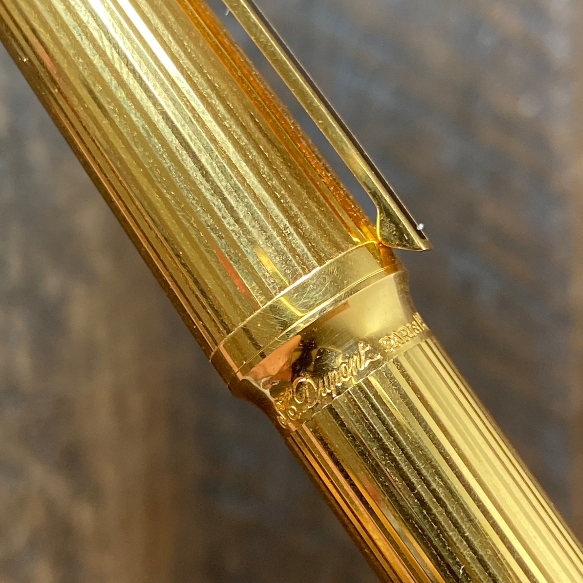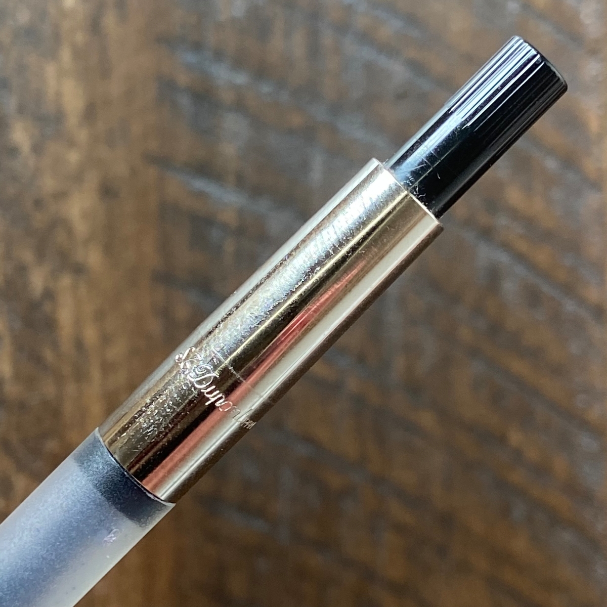 Ниже колпачка на корпусе имя бренда — S.T. Dupont Paris, а также оттиск логотипа — колёсико с крыльями, насколько я смог разглядеть.
