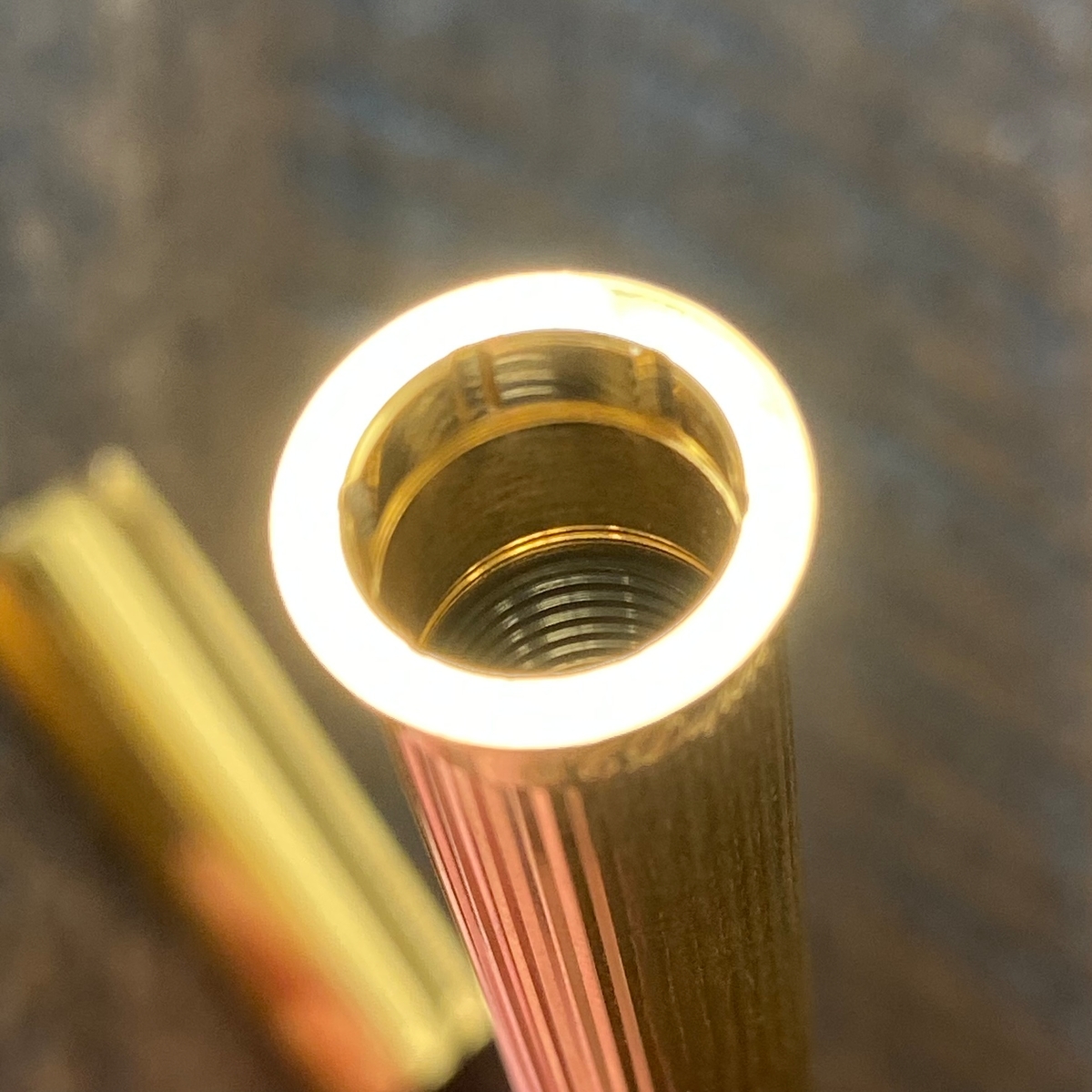 Система, оказывается, такова: внутри корпуса ручки есть пластиковая втулка, которая вращается винтом, — тем самым секция откручивается или прикручивается. Не самый удобный, но весьма интересный механизм.