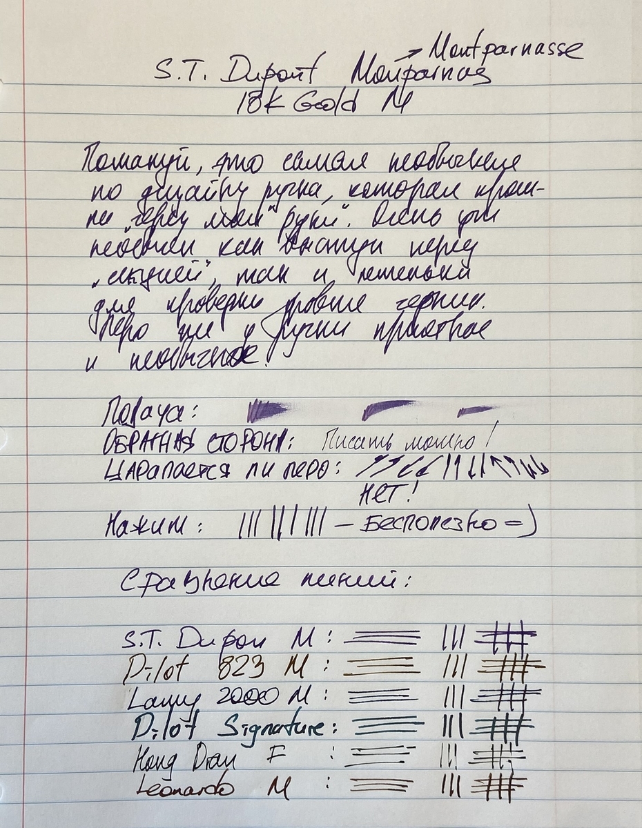 Подача умеренно-обильная. Обратной стороной Montparnasse пишет тонко, гладко, сухо, при этом совершенно не царапается.