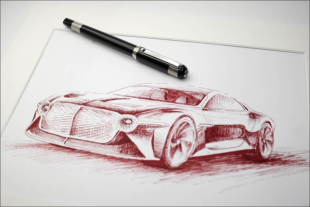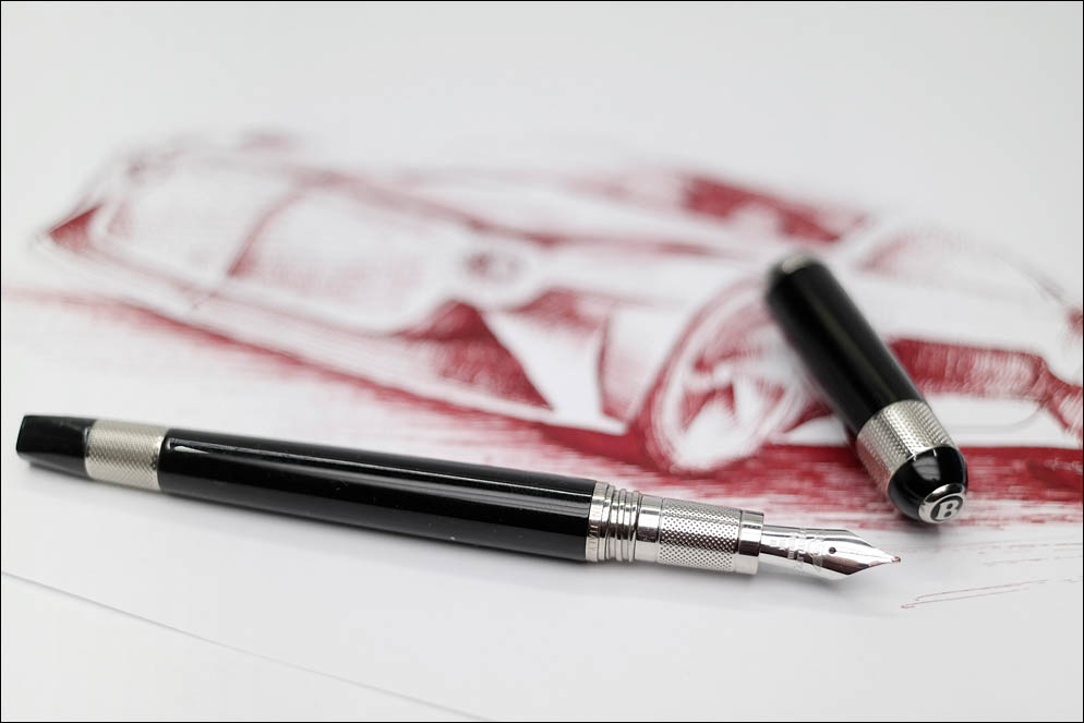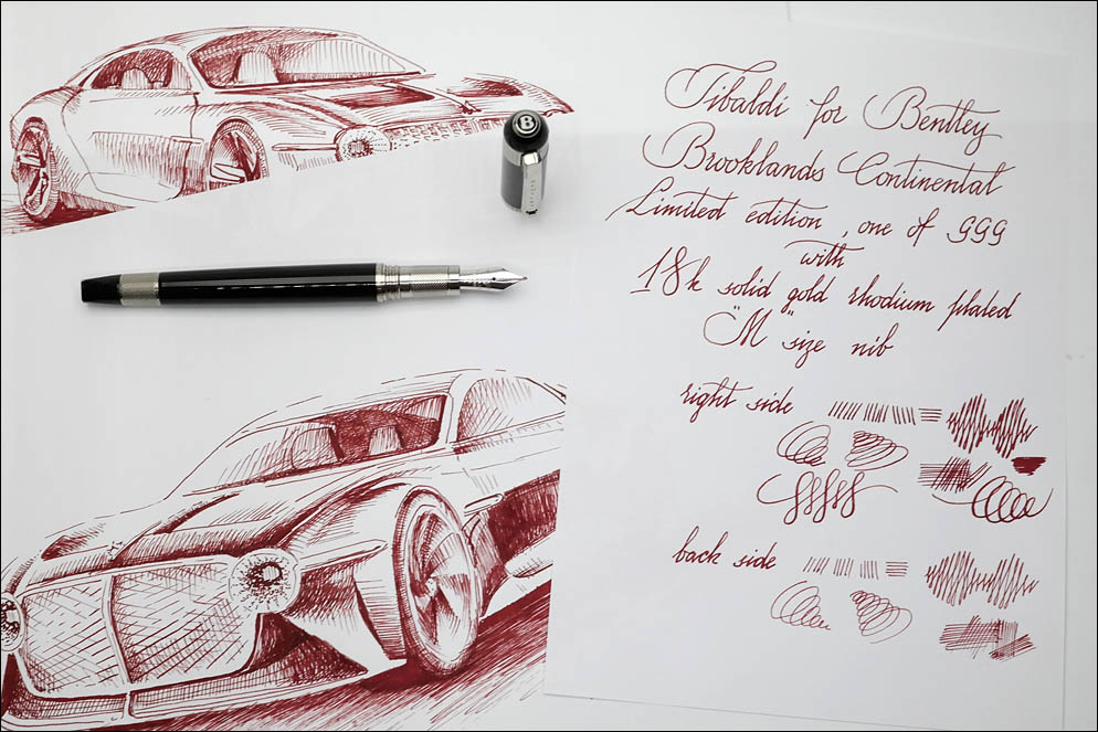 Хозяин ручки попросил подобрать для тестового рисунка сюжет, связанный с компанией Bentley, и я нырнул в Google. В поиске картинок случайно попал на автомобильный форум, где почитал отзывы владельцев автомобилей Bentley. Один из них мне так понравился, что не могу не привести его здесь. Он как нельзя лучше иллюстрирует минусы и данной модели перьевой ручки.