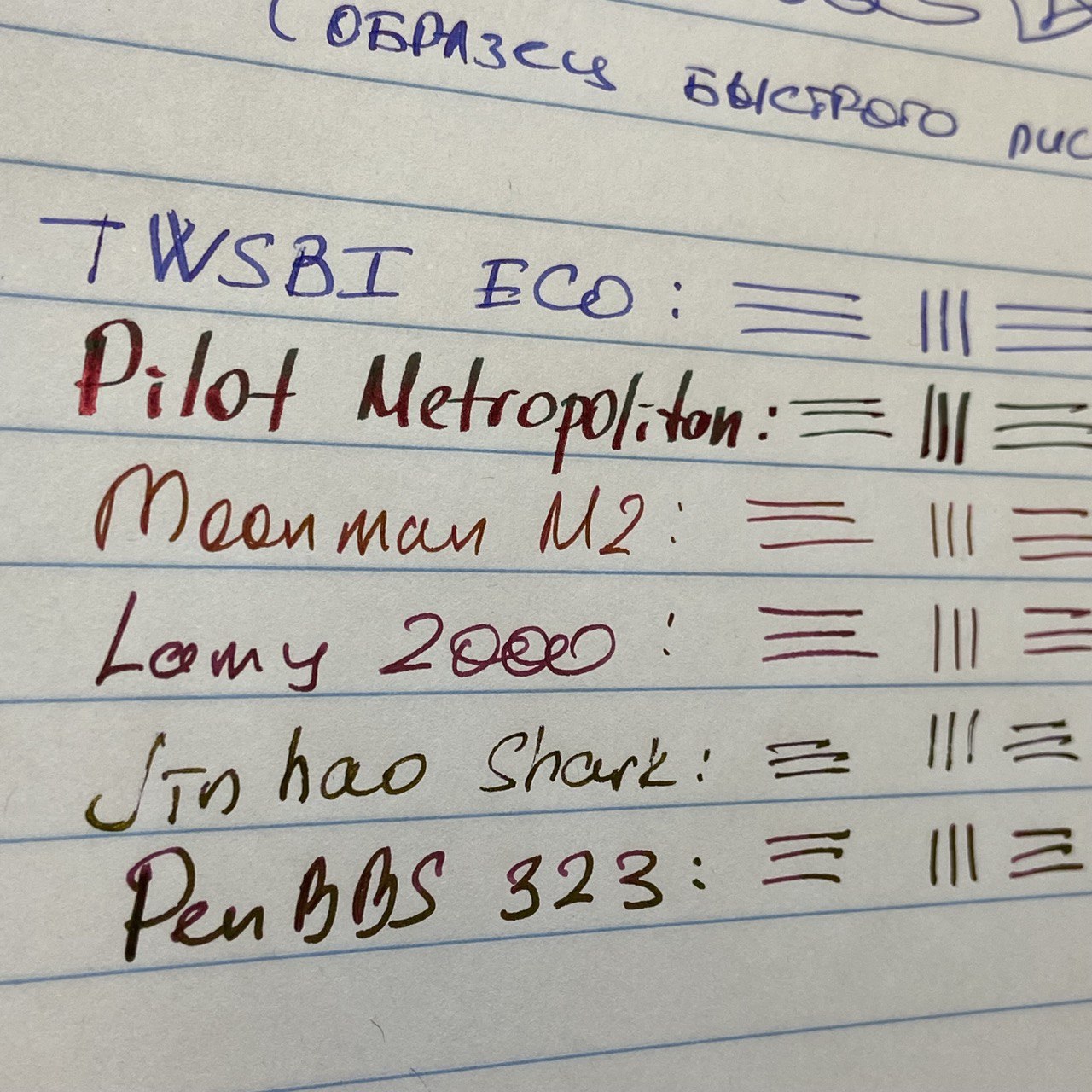 TWSBI ECO — достойный вариант с удобной системой заправки и интересным стаб-пером. Отлично лежит в руке и хорошо пишет.