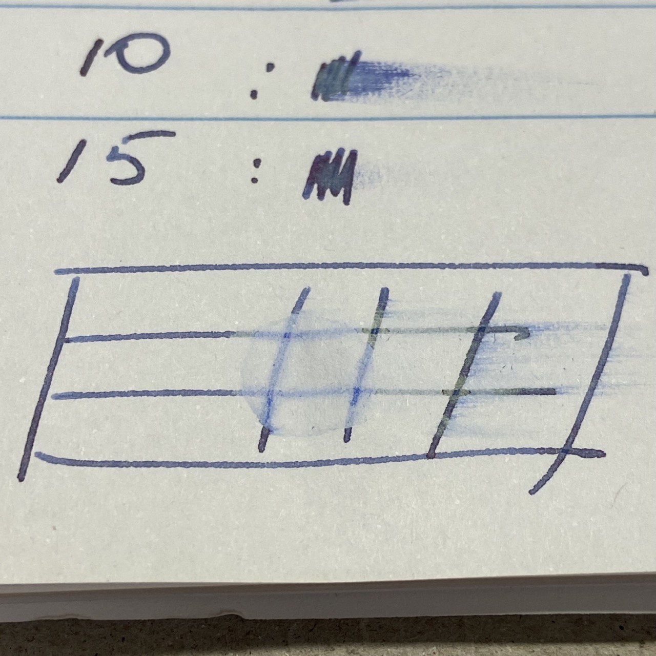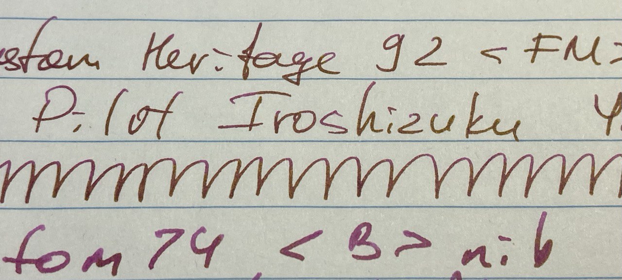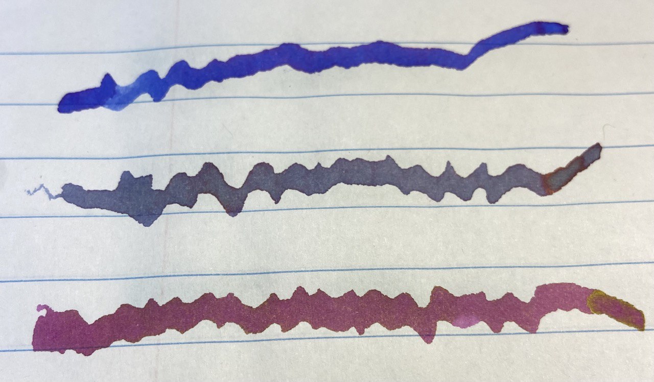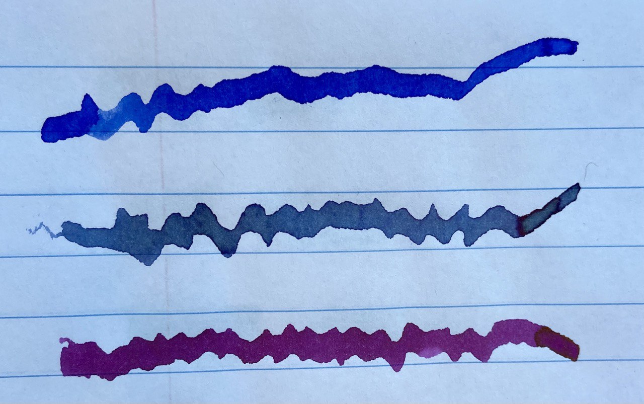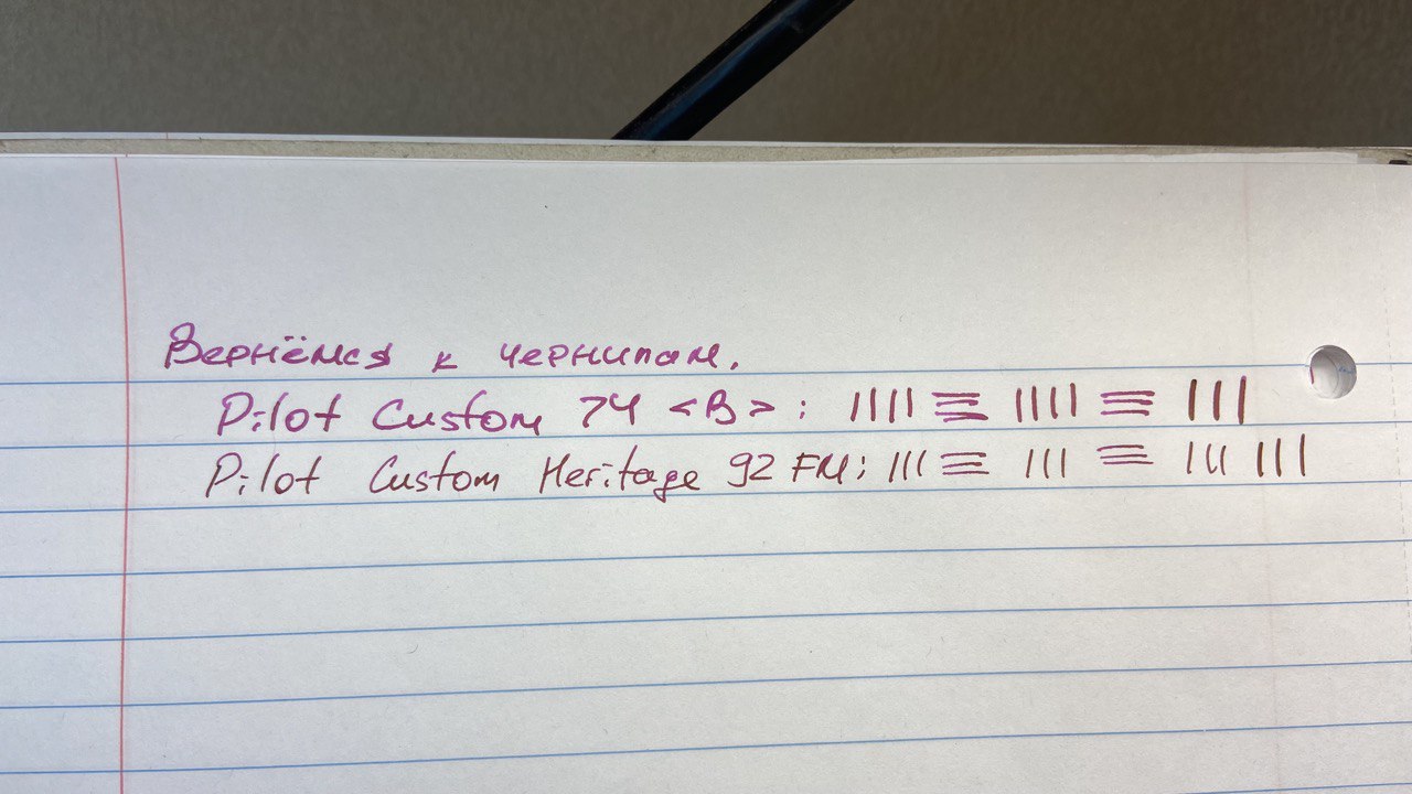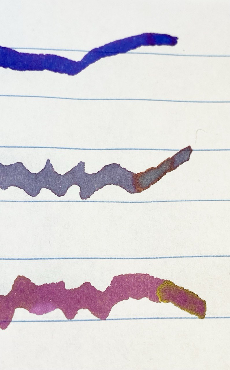 Ещё из удивительного: на пере Broad чернила сильно ушли в розовый цвет, такого изменения оттенка с другими у меня не происходило.