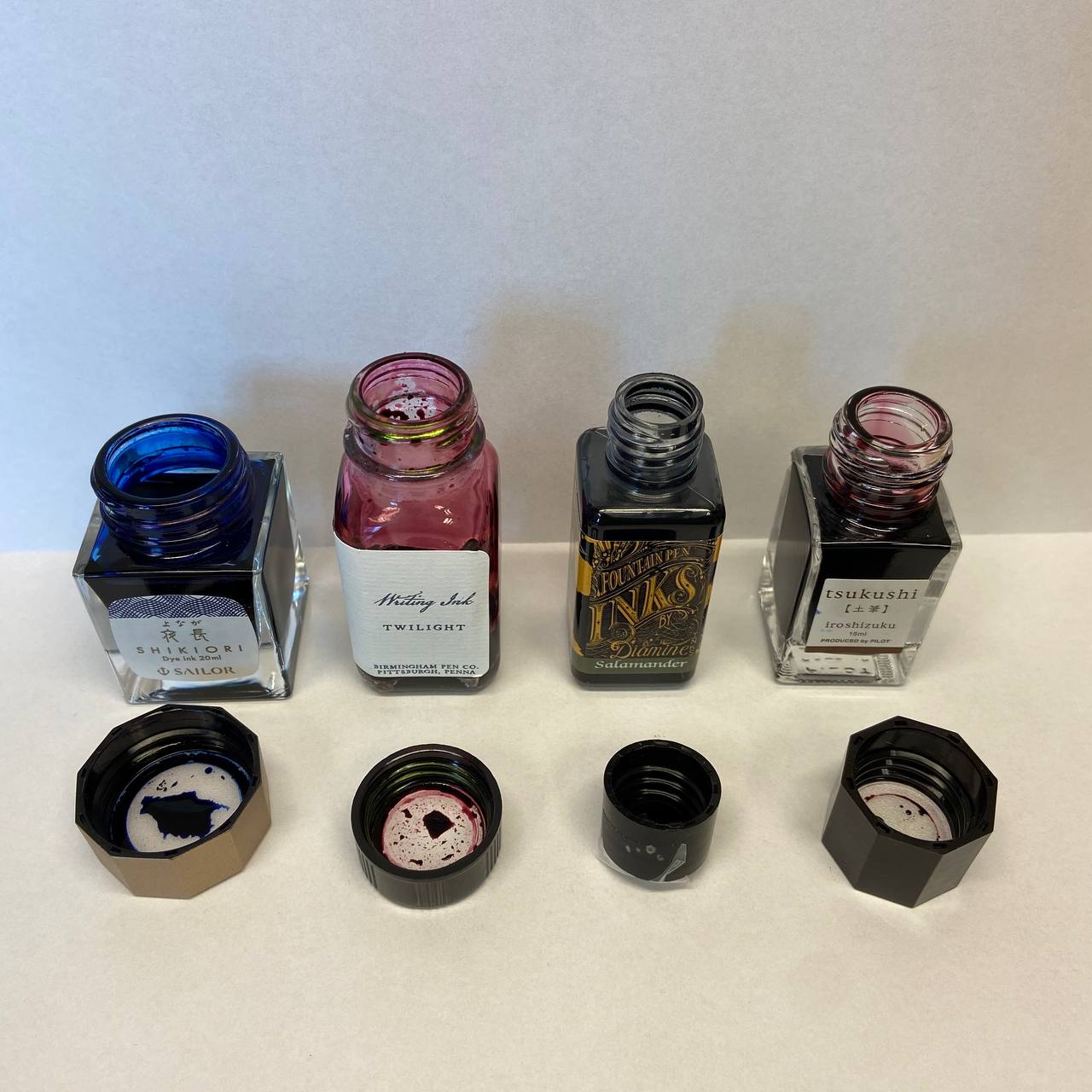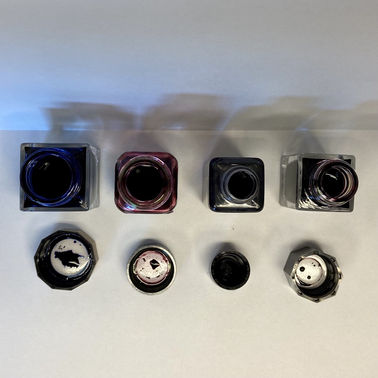 Я нашёл у себя ещё три похожих по типу и размеру (с 15 мл) банок чернил, добавлю их для сравнения.
