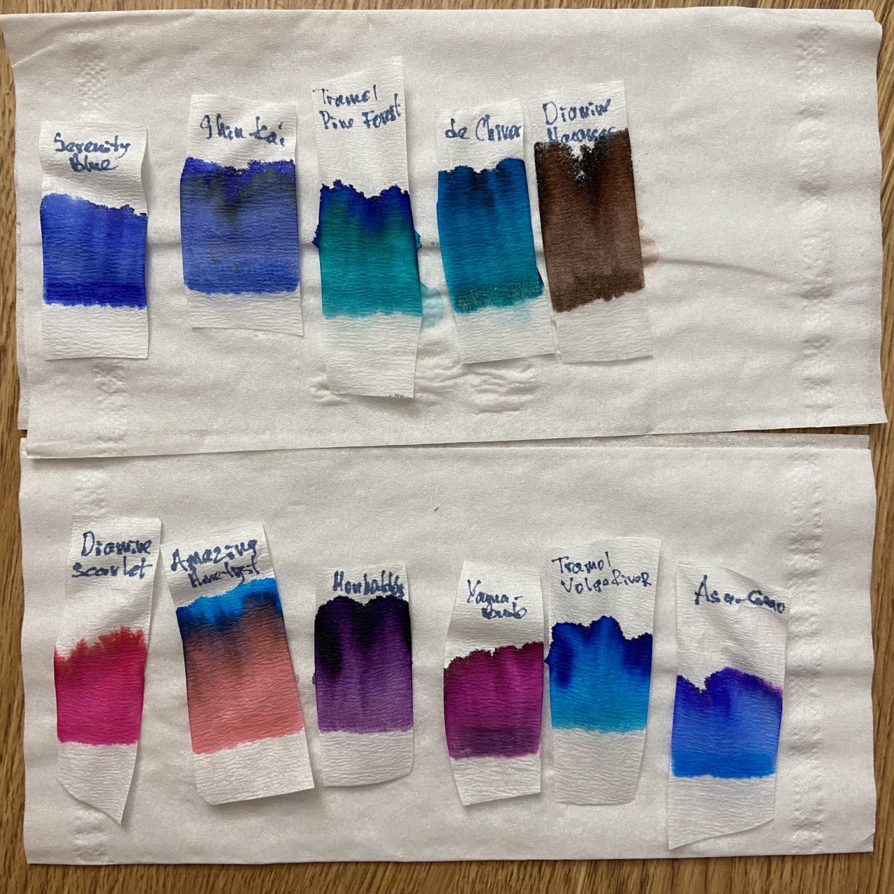 Есть ещё одна замечательная штука — хроматография: позволяет оценить, из каких оттенков состоят чернила, какие цвета, помимо основного, можно получить при письме и рисовании.