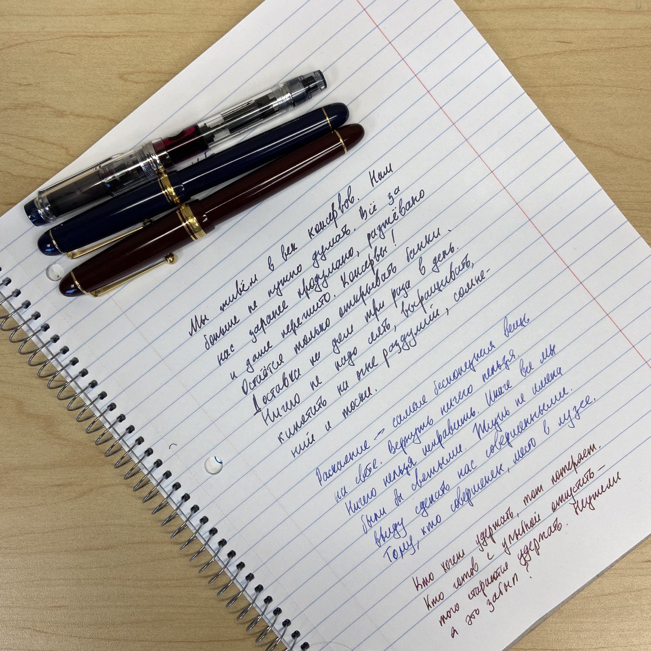 Iroshizuku отлично ведут себя практически во всех ручках, прекрасно смачивают и смазывают перо. Единственное, из-за того, что они очень жидкие и текучие, их лучше не заправлять в инструменты с обильной подачей. То есть это идеальный вариант для «сухих» ручек с подачей скупой.