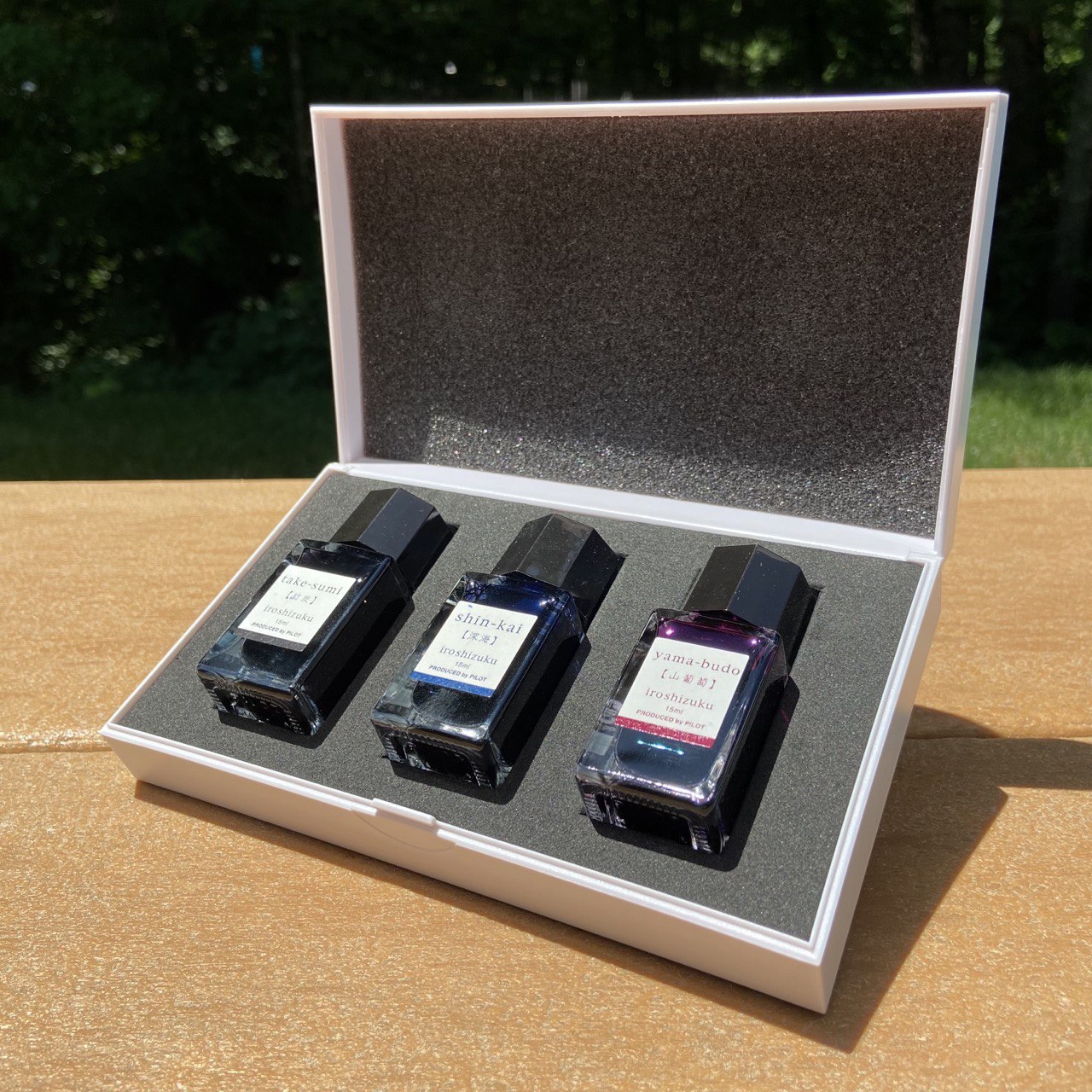 К слову, наборы Pilot Iroshizuku продаются и в пластиковом кейсе, превосходящем по размеру картонный в два раза.