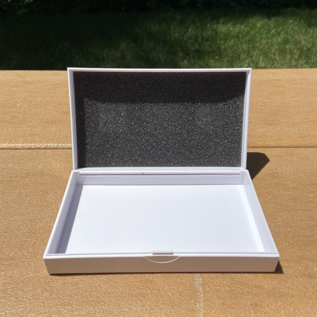 Он (основной бокс) выполнен из плотного картона. Отделка синего цвета, имитация кожаного покрытия.