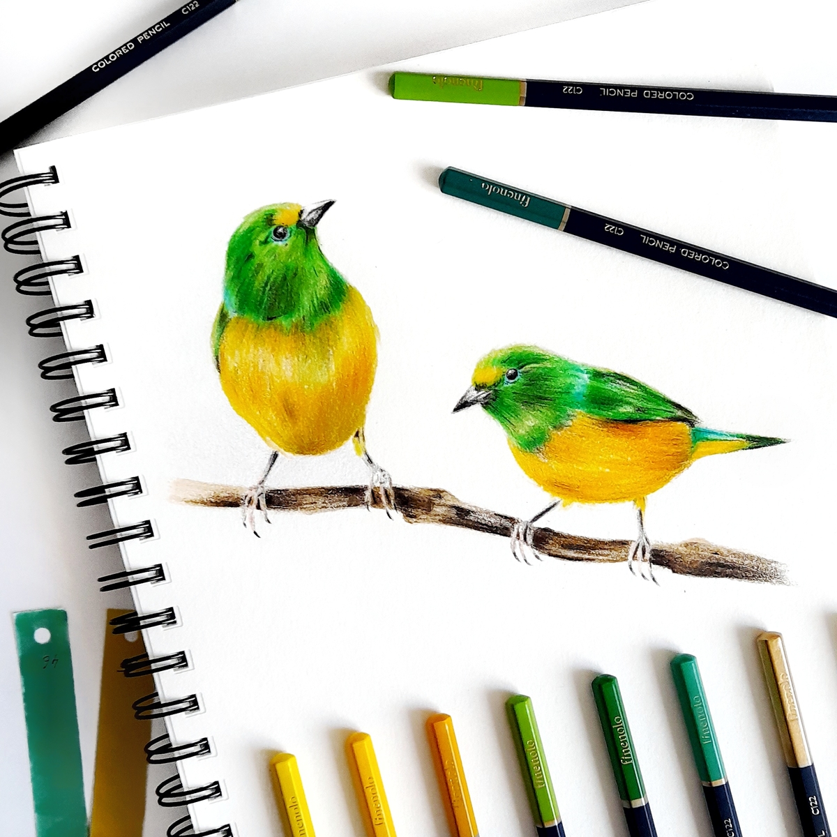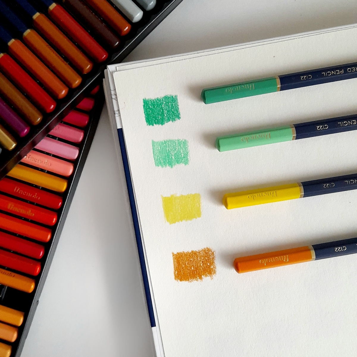 Карандаши Finenolo мне очень понравились — начиная с системы хранения, дизайна и заканчивая характеристиками. Они сочетают в себе именно то, что я ищу в таких инструментах: мягкость грифелей, яркость пигментов, хорошую смешиваемость.