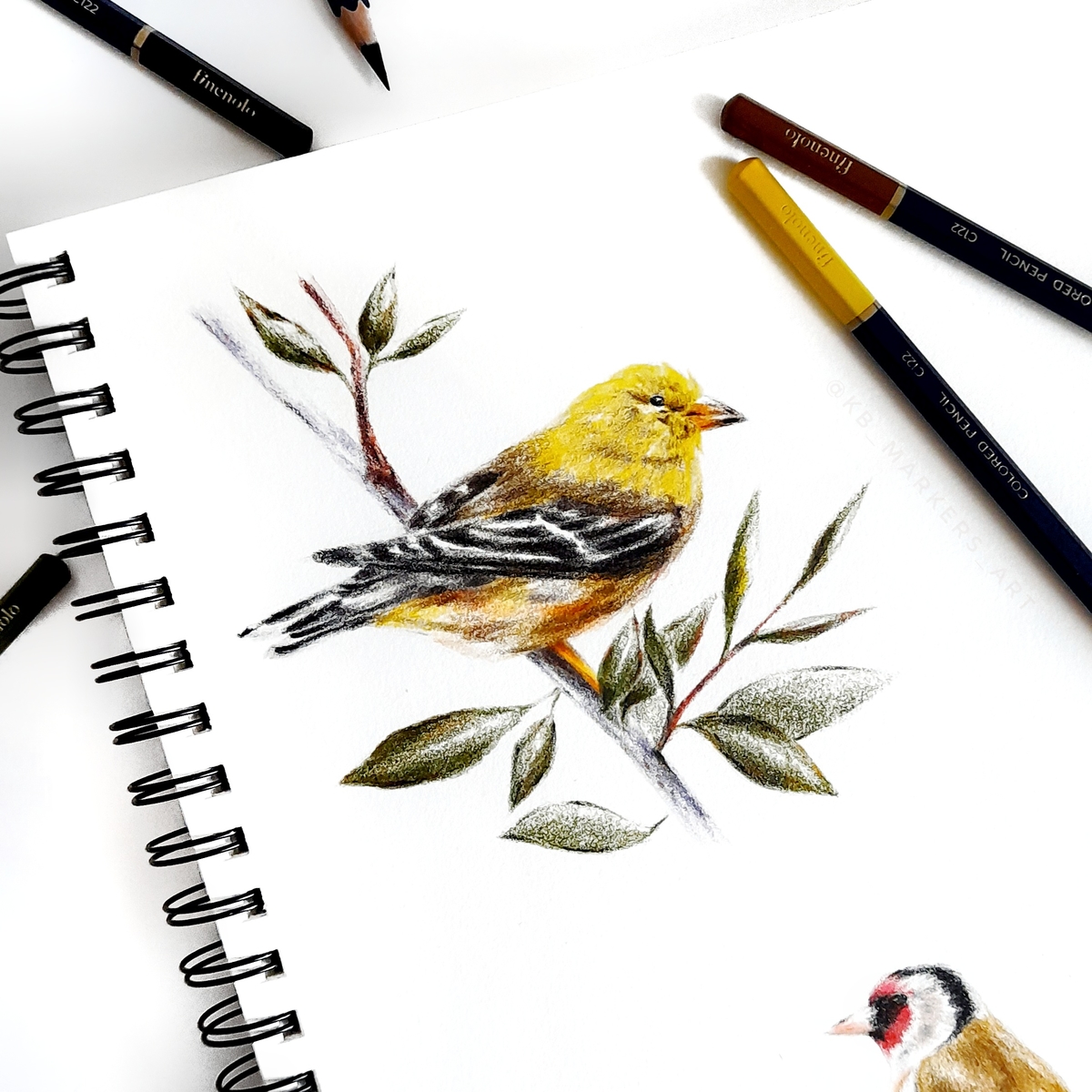 Мне очень понравились разнообразные жёлтые и охристые оттенки из набора, поэтому я использовала их во всех иллюстрациях. Благодаря превосходной наслаиваемости добавляла мягкие тени и создавала подтоны на перьях птицы. Осталась невероятно довольна!