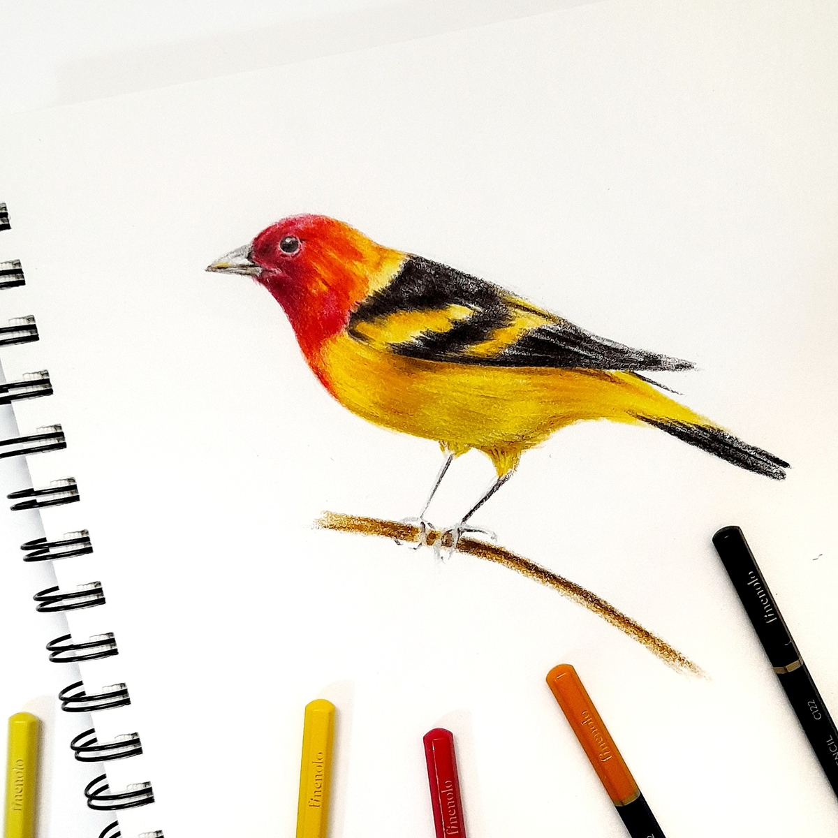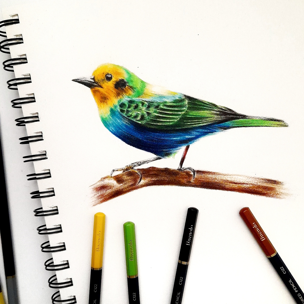 Один из лучших способов протестировать карандаши — изобразить с их помощью различные текстуры. Мех или перья — отличный вариант, поэтому мне на ум пришли птицы. Рисуя их оперение, проверю устойчивость грифеля и, опять же, наслаиваемость пигмента.