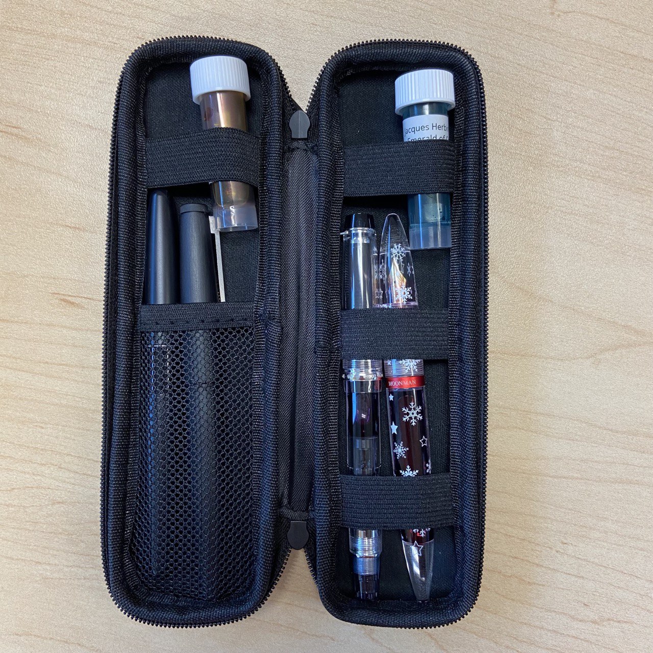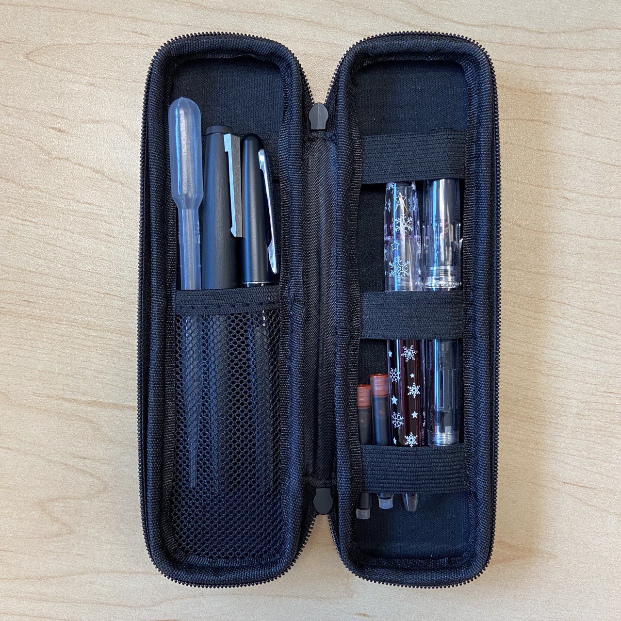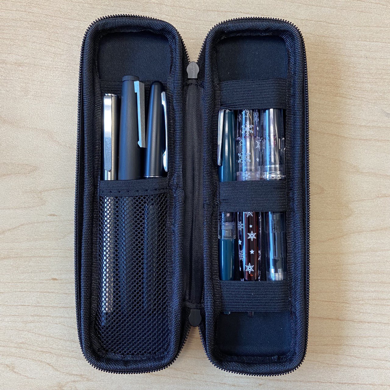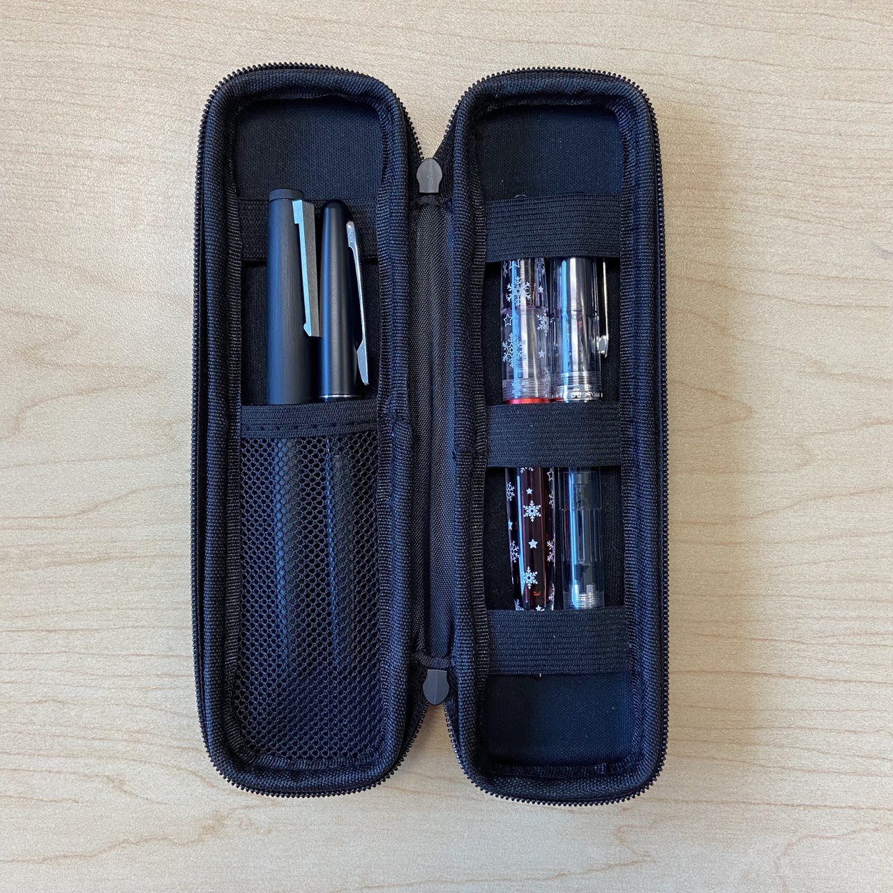 В кейс без проблем помещаются четыре перьевые ручки (по две на каждую сторону).