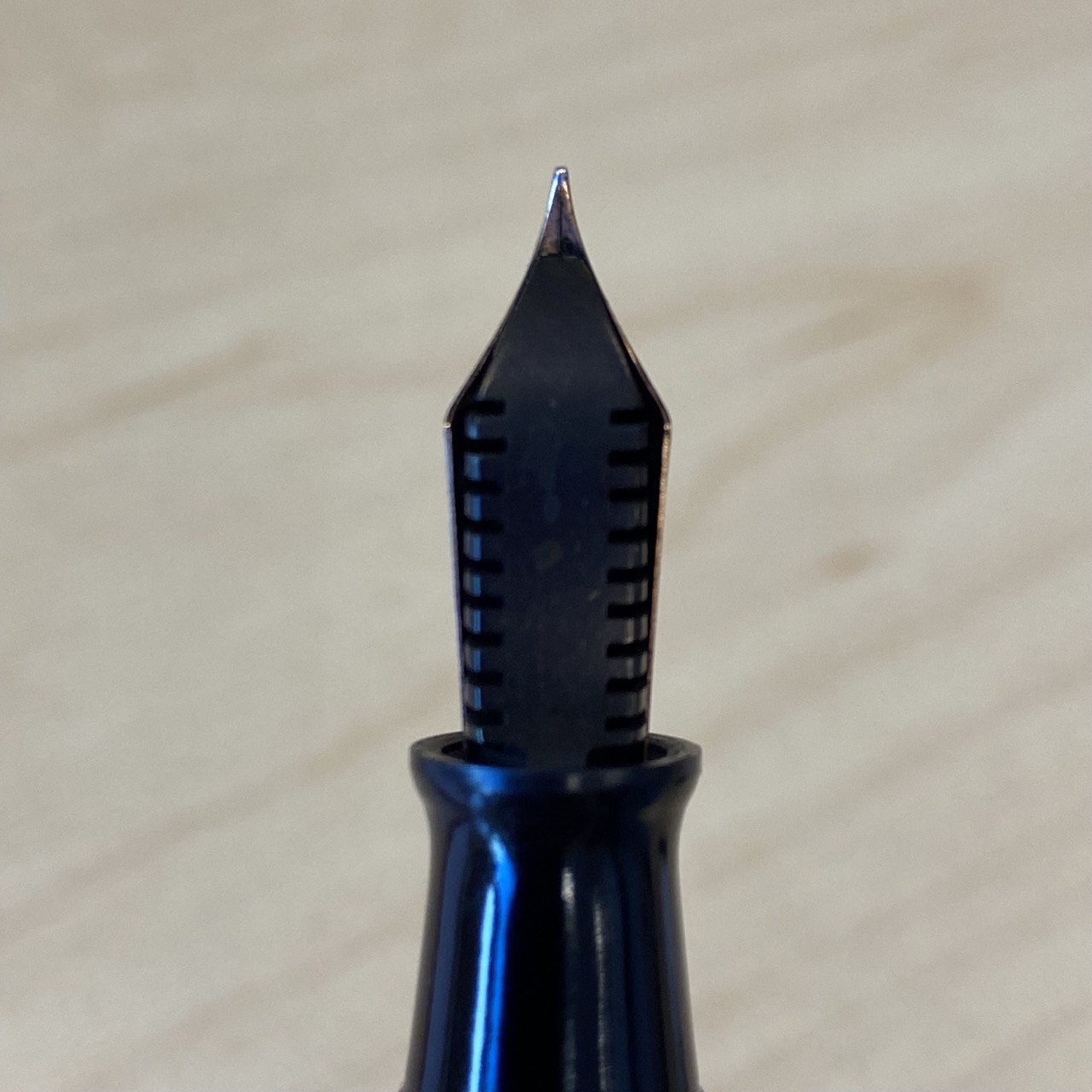По тактильным ощущениям чистый гвоздик, пружинить не хочет ни в какую, но при этом позволяет на себя поднажать. Не то чтобы сильно хочется, но возможность есть. Однако замечу, что это не та самая притча во языцех — винтажный флекс золотого пера. В общем, бонус, а не фича.