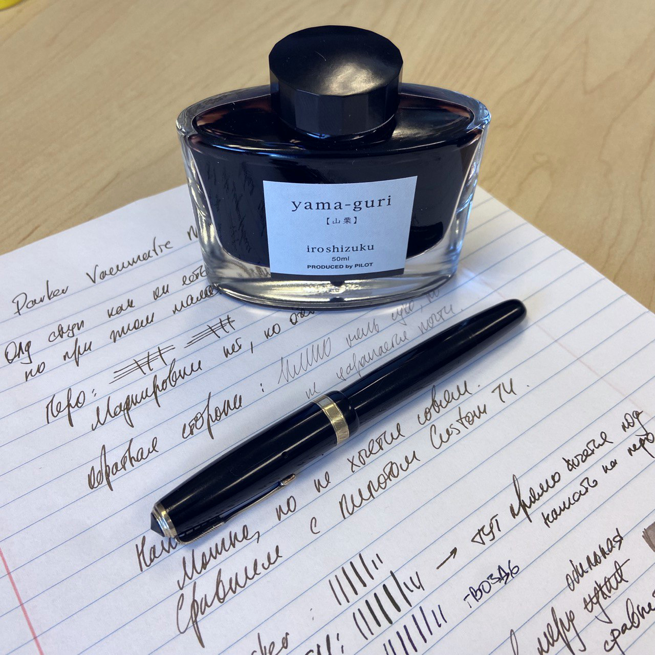 Почему-то захотелось заправить эту ручку не классическими синими чернилами Waterman Serenity Blue, а коричневыми Pilot Iroshizuku yama-guri.