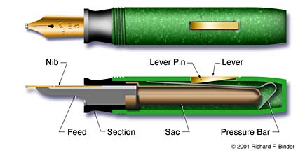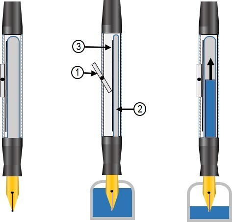 Наглядно — ручка с рычажной системой заправки в разрезе: