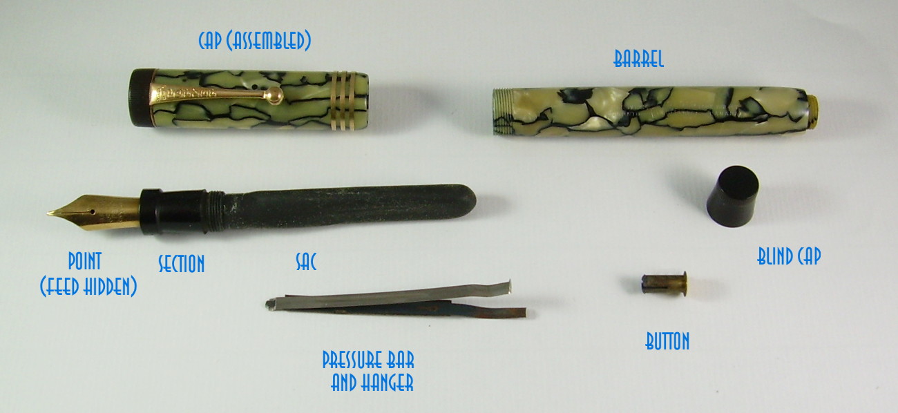 Предыстория. Parker прекрасно понимала, что самая распространённая на начало XX века леверная/рычажная* система заправки не добавляет ручкам ни грамма эстетики. К тому же может быть случайно активирована, что приведёт к изливанию чернил наружу. Именно поэтому на инструменты из топового сегмента производитель ставил не рычаг, а кнопку, которая пряталась за blind cap (в переводе с английского «заглушка»; навершие на торце): случайно не нажмёшь.