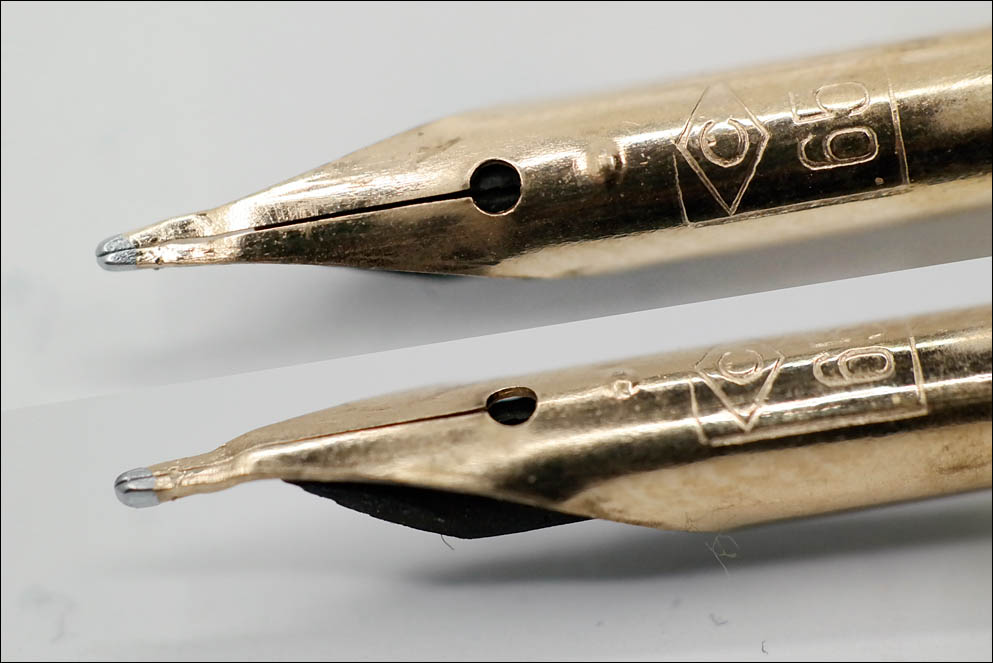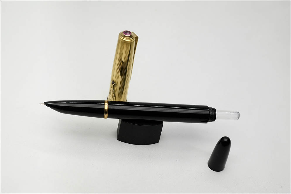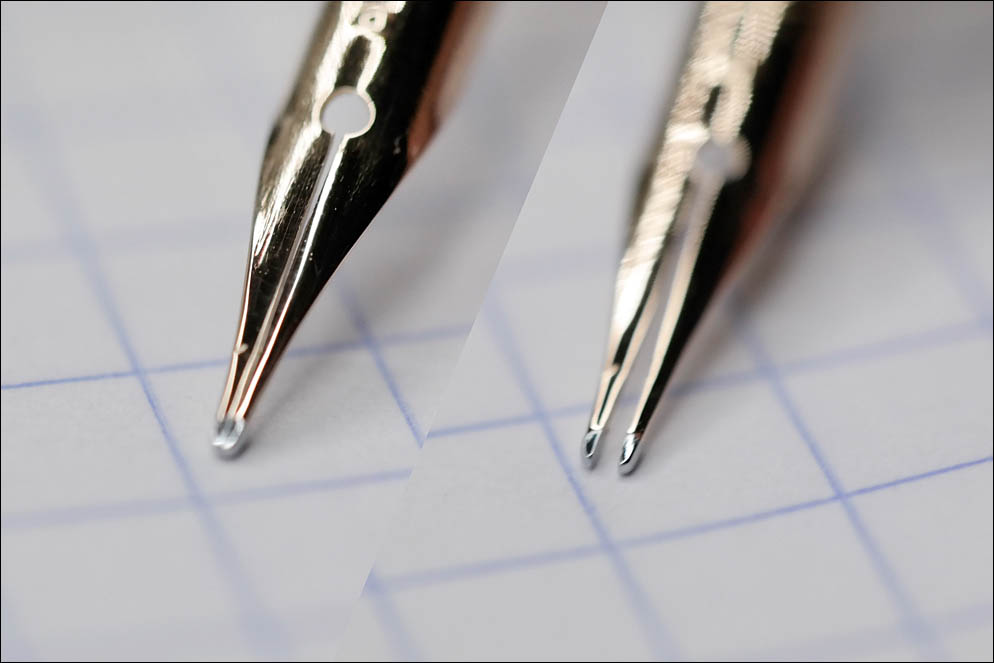 После обслуживания и ремонта ручка была проверена письмом и рисунком. Ширина ординарной линии прямой стороной составляет 0,4 мм, при этом нажим позволяет увеличить эту линию до 1,0 мм (больше не позволяет капюшон над пером). Подача обильная, линия влажная и сочная. Обратная сторона дает сухую и полупрозрачную линию шириной 0,25—0,3 мм.