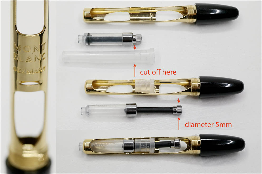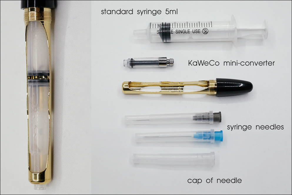 Если отрезать по этому ребру жёсткости сразу за «юбкой», втулка по длине идеально дополнит конвертер KaWeCo до размера стандартного картриджа International. Единственное, головка поршня входит очень туго, её диаметр 5 мм.