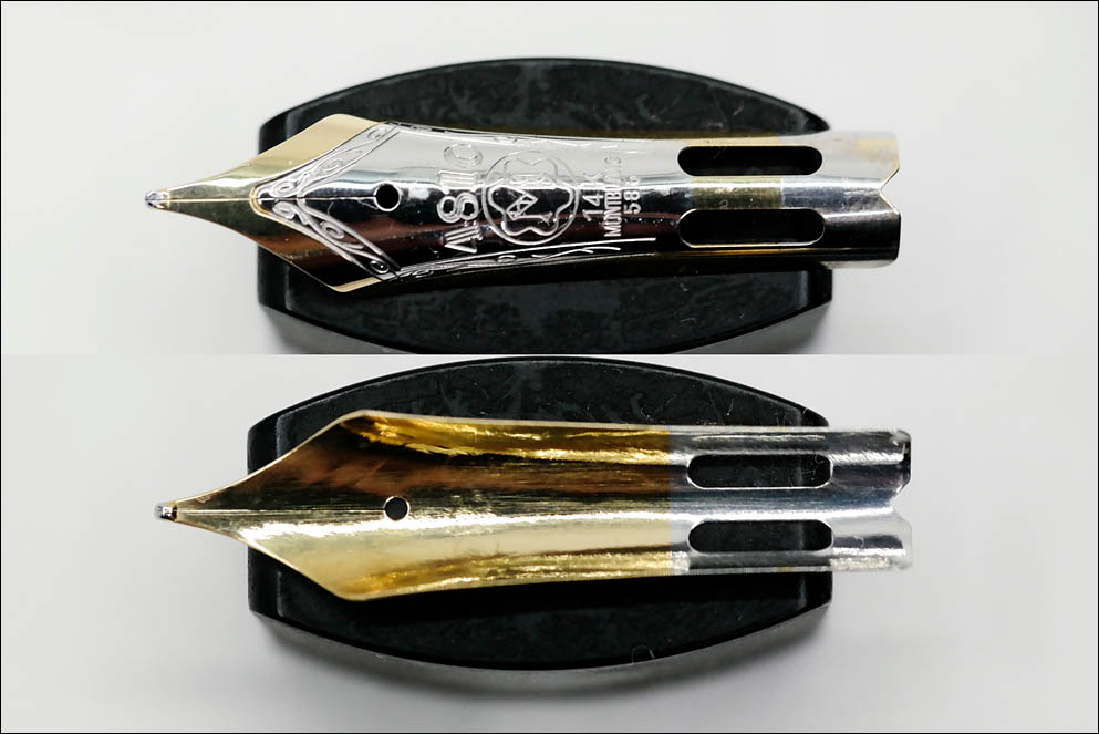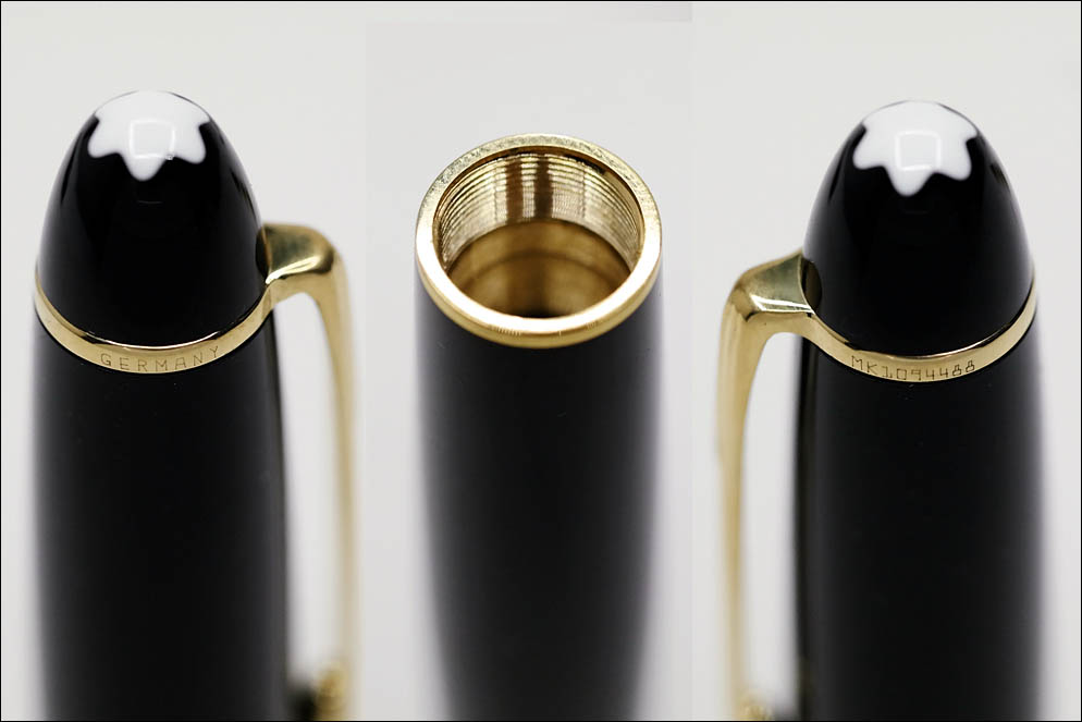 Колпачок, помимо позолоченного клипа, в качестве украшений имеет ещё три позолоченных кольца: одно широкое и два более узких. На среднем широком тиснение: MONTBLANC-MEISTERSTUCK