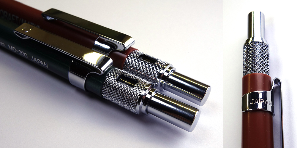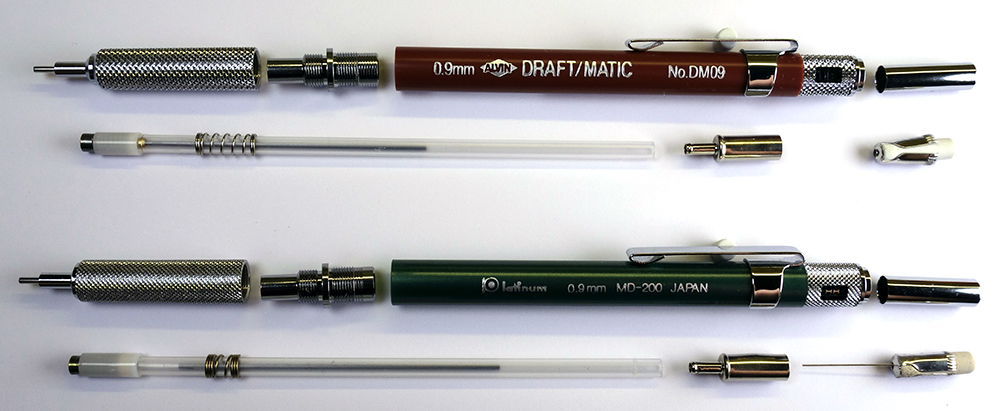 Карандаши очень похожи друг на друга и, по сути, имеют лишь два значительных, на мой взгляд, различия: очень разное зерно насечки и разные пружины при механизме.