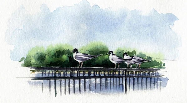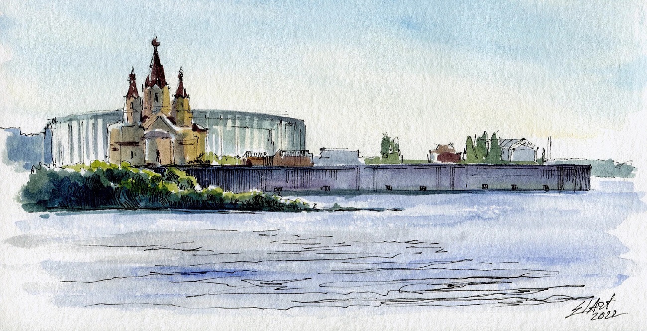 На пленэр я отправилась не одна, а всем семейством. Решили совместить полезное с приятным. Я рисовала, а они гуляли. Муж периодически подбегал и снимал части процесса.