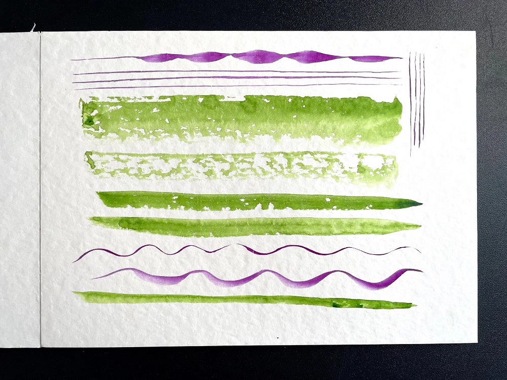 Как только кисть пришла, сразу же захотелось её протестировать. Насколько мягкая, хорошо ли берёт и отдаёт воду, острый ли кончик? Конечно, у меня уже были догадки, какой использован ворс. По виду и оформлению ворса я предположила, что кисть из серии Aqua Black с soft-touch покрытием. Из этой серии у меня уже есть две кисти, и я очень их люблю.