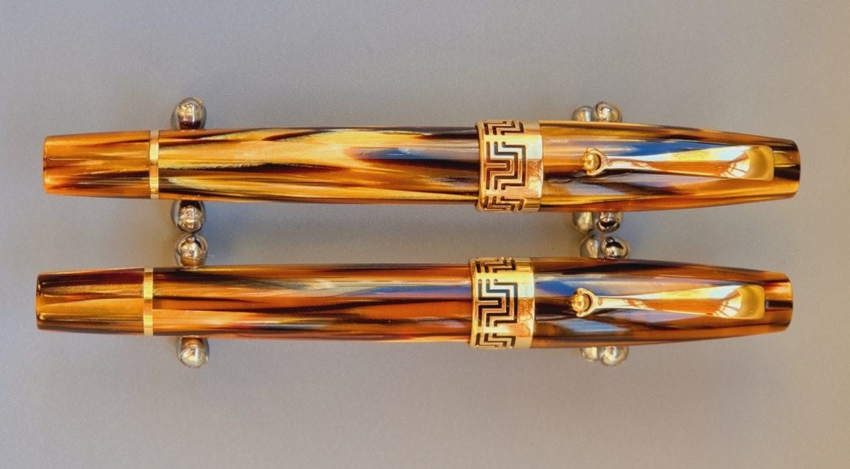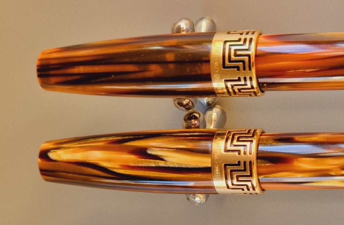 Как я уже писал, две Montegrappa Extra Gold в черепаховом окрасе (хотя узоры на целлулоидном корпусе всё равно у каждой уникальны) оказались у меня одновременно, и это были разные модификации, отличавшиеся друг от друга. Решил сделать небольшой сравнительный обзор.