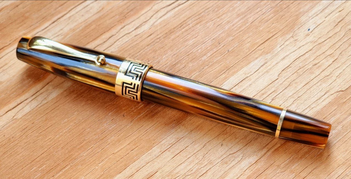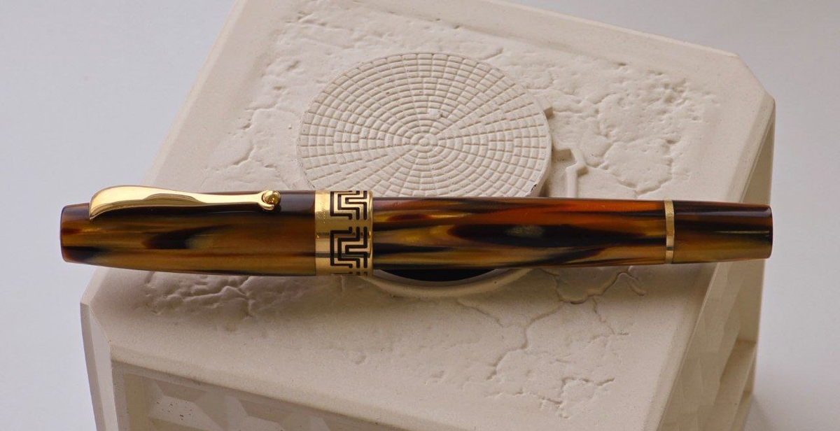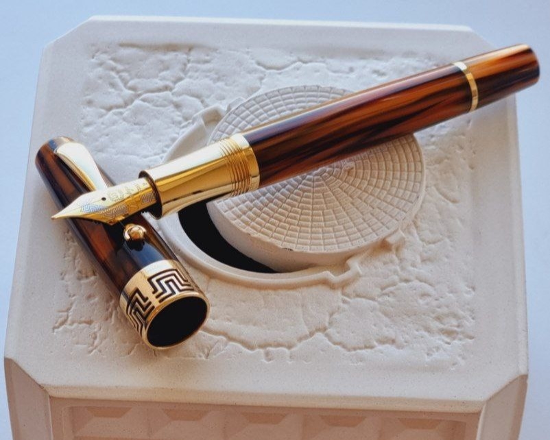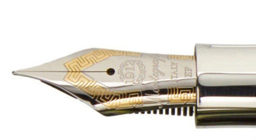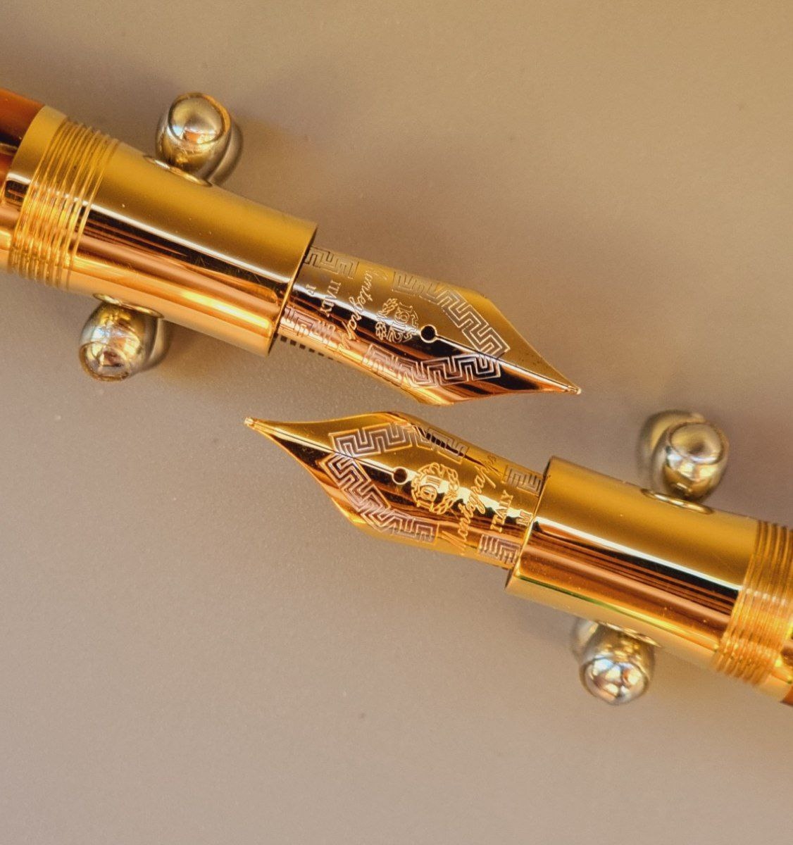 У Montegrappa Extra Gold перо имеет так называемую инвертированную маску: основная площадь у него жёлтая, а меандр (орнамент) — белый.