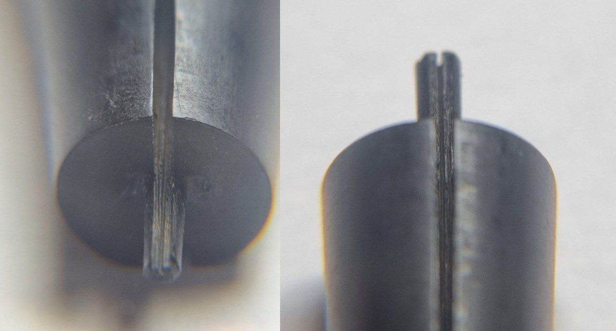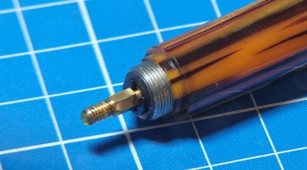 В ходе диагностики меня смутило, что фидер вставлен не до конца, но при этом сидит очень плотно: наверное, это была одна из самых тугих сборок, которые доводилось разбирать (оказалось, он от другой модификации подобной ручки). Опасения подтвердились: причина такой посадки в отломанном хвостовике (опять же, в прошлом выпуске о Montegrappa Extra можно прочитать о нескольких таких случаях).