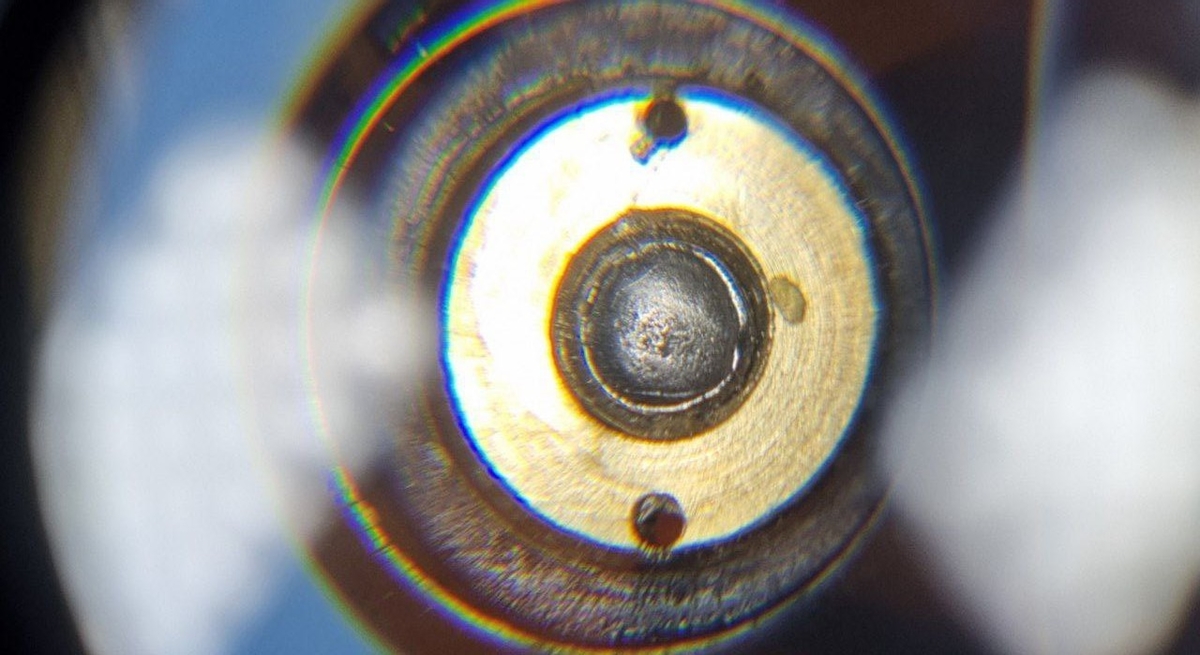 Пришлось снимать медальон, а клей под ним вновь посторонний… Далее просверлил во втулке отверстия диаметром 0,5 мм, сделал соответствующий съёмник; нагрел втулку, вставил съёмник и открутил.