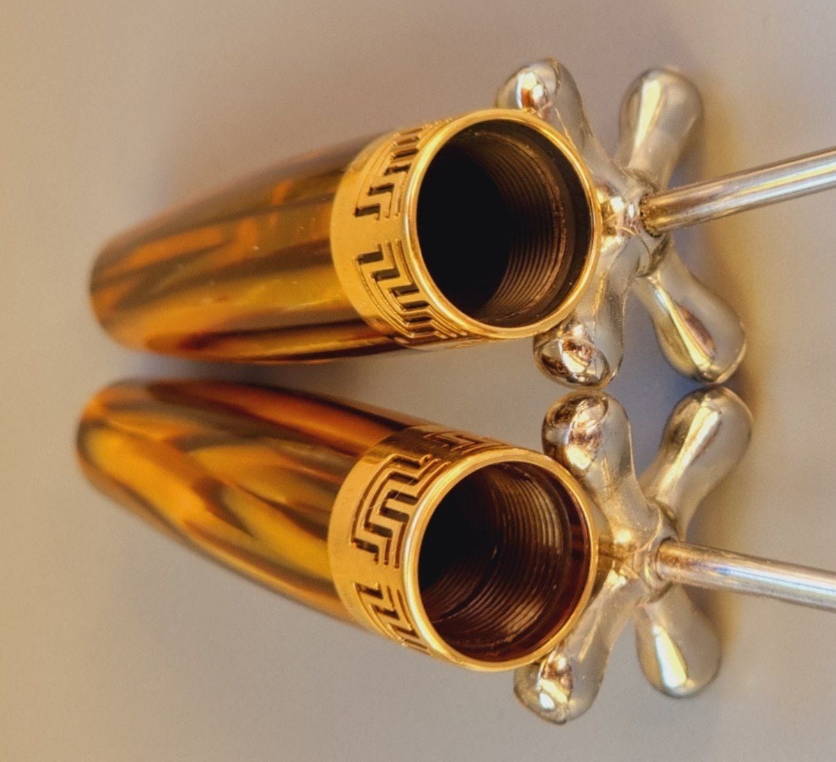 Как я уже писал, две Montegrappa Extra Gold в черепаховом окрасе (хотя узоры на целлулоидном корпусе всё равно у каждой уникальны) оказались у меня одновременно, и это были разные модификации, отличавшиеся друг от друга. Решил сделать небольшой сравнительный обзор.