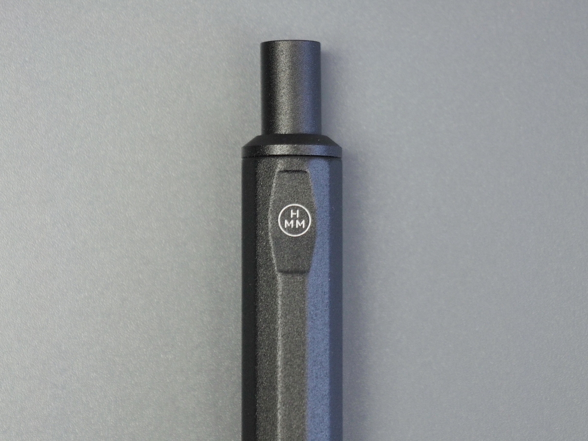 Клип на ручке отсутствует как класс, а там, где в теории он мог бы находиться, белой краской нанесён логотип: буквы HMM, вписанные в круг.