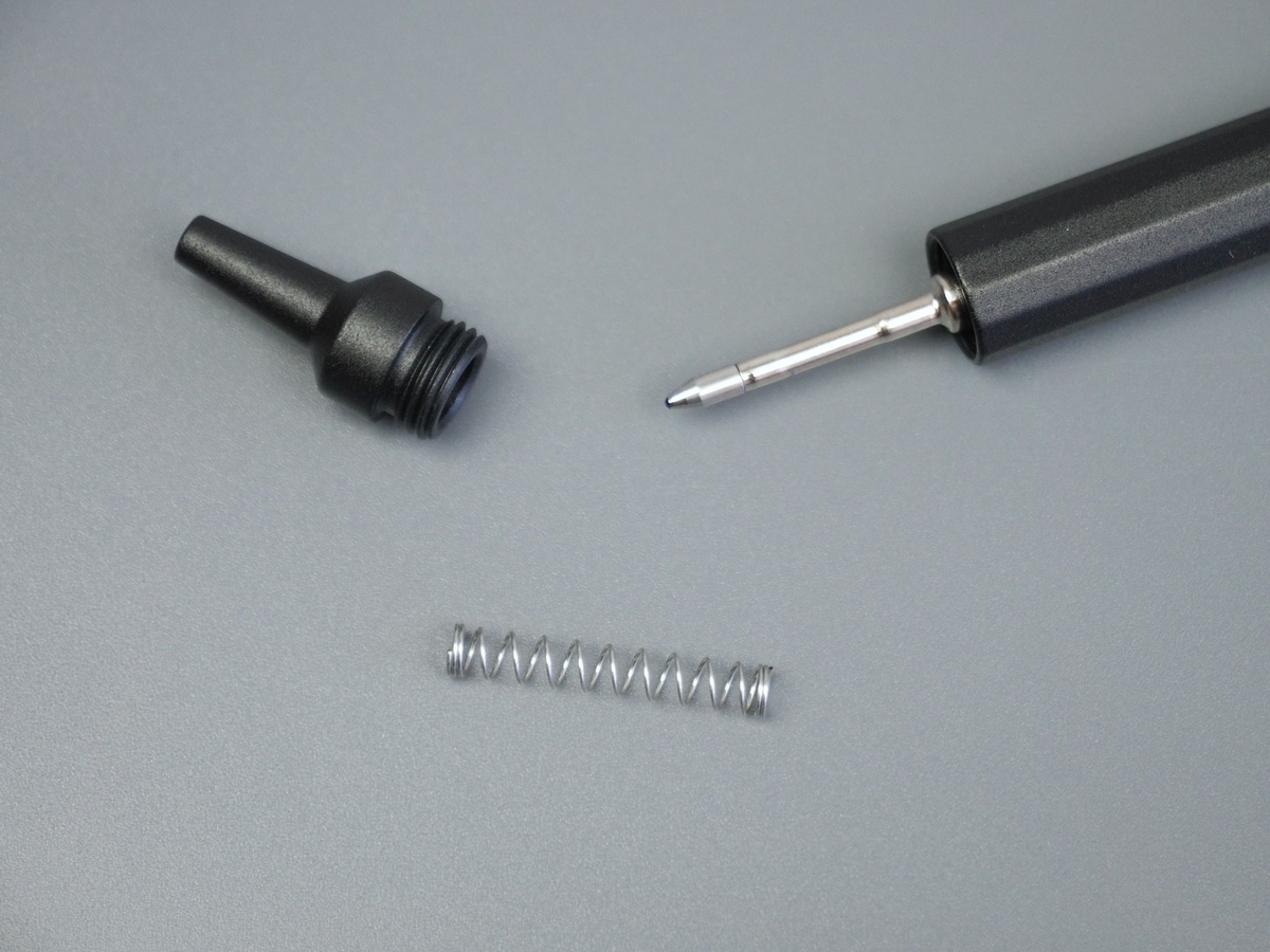 - Механизм подачи стержня. Тут я не отдавал предпочтений конкретному варианту. По большому счёту неважно, будет механизм подачи стержня кнопочным или поворотным. Но если первое, то под кнопкой обязательно должна быть пружина, возвращающая кнопку после нажатия в исходное положение, чтобы та не дребезжала. Инструмент должен быть тихим и казаться цельнолитым, а не бесячей погремушкой.