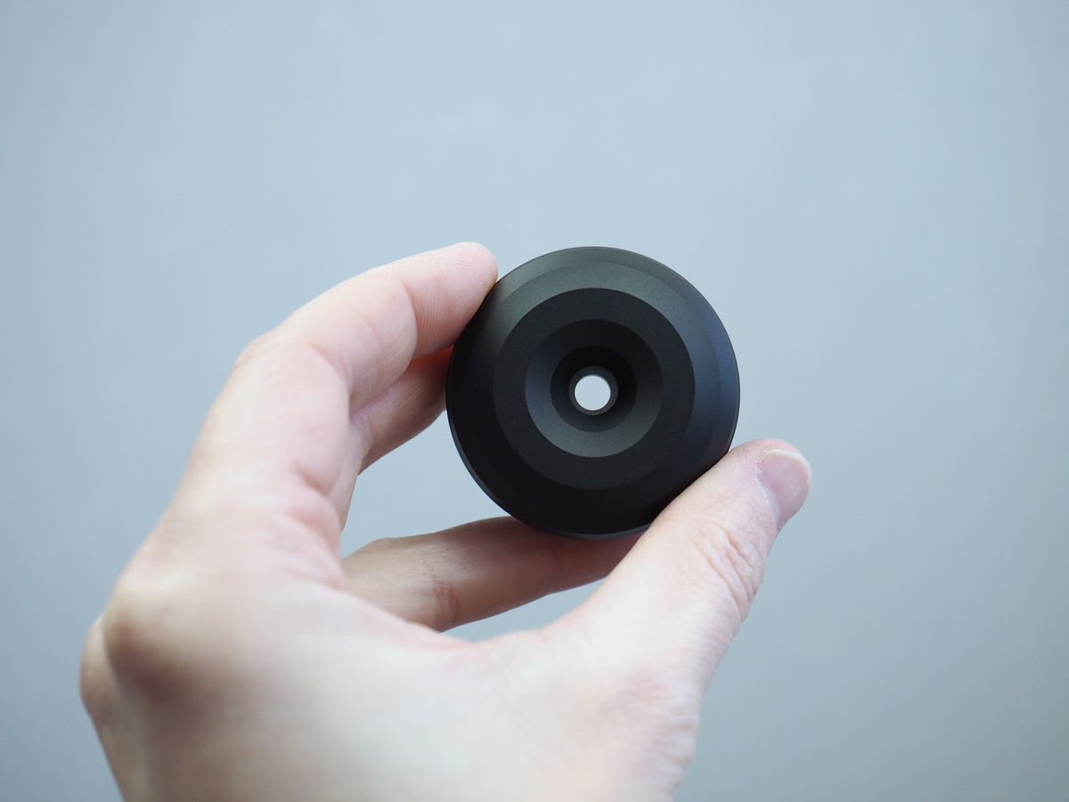 Представляет собой воплощение геометрической фигуры тор, также известный как бублик из… далее перевод с задника упаковки, гласящий finely crafted milled aluminum = «тонко обработанный фрезерованный алюминий».
