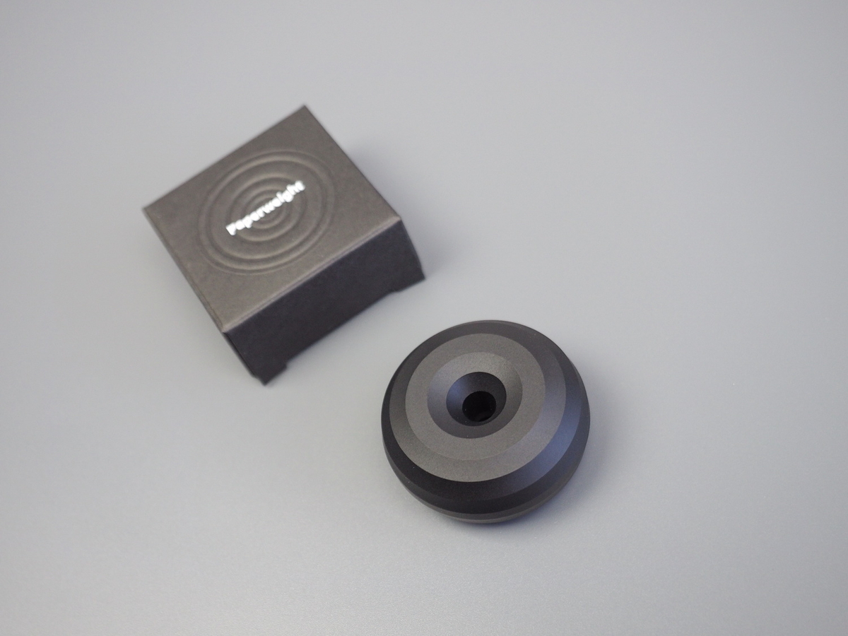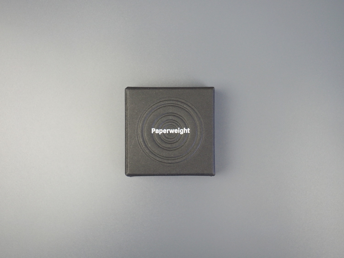 Если пользователь ранее не видел другие упаковки этой компании, то кажется, что это просто несколько тиснёных кругов на картоне, а поверх них белая надпись Paperweight.