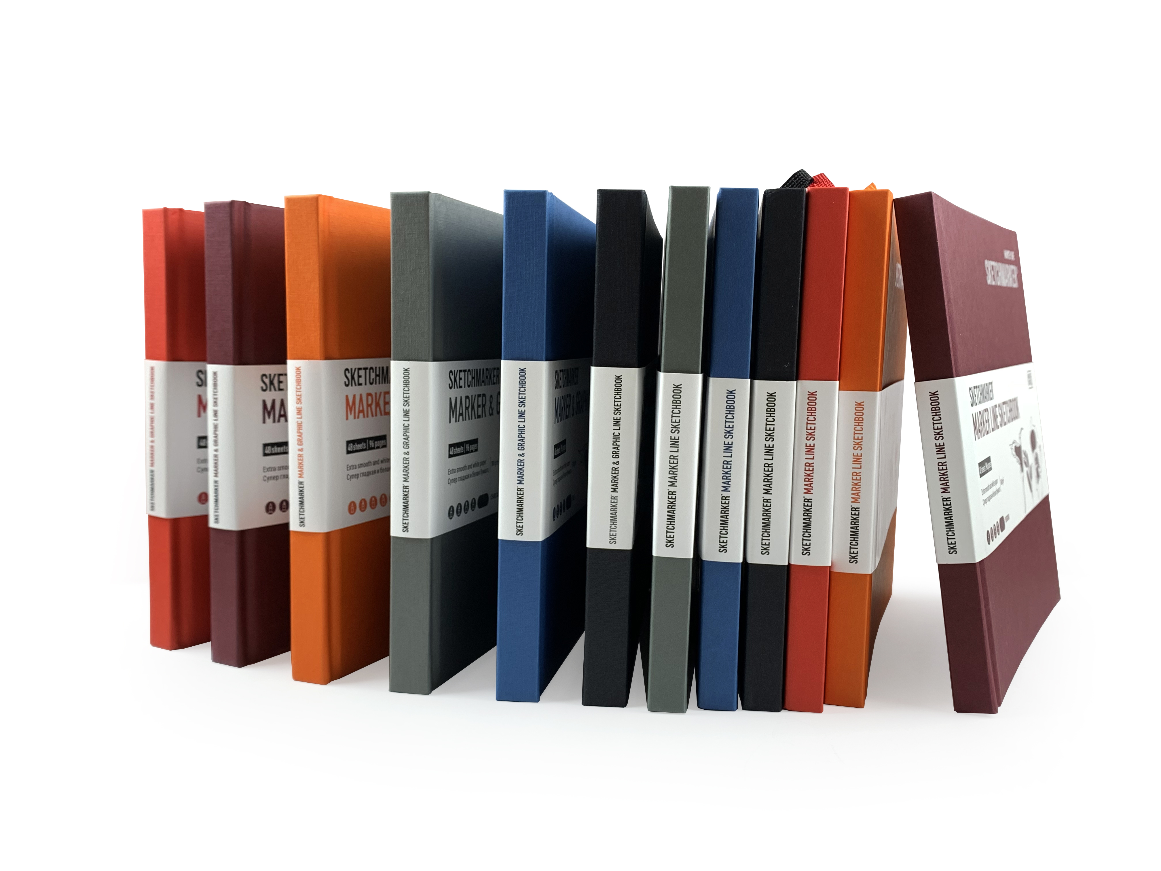 SKETCHMARKER выпускает несколько типов скетчбуков — в мягкой и твёрдой обложке, различных форматов, плотностью 160 г/м² и 180 г/м². Бумага скетчбуков производится в Европе, подходит для маркеров, карандашей, брашпенов, туши, ручек и легких слоев акварели.