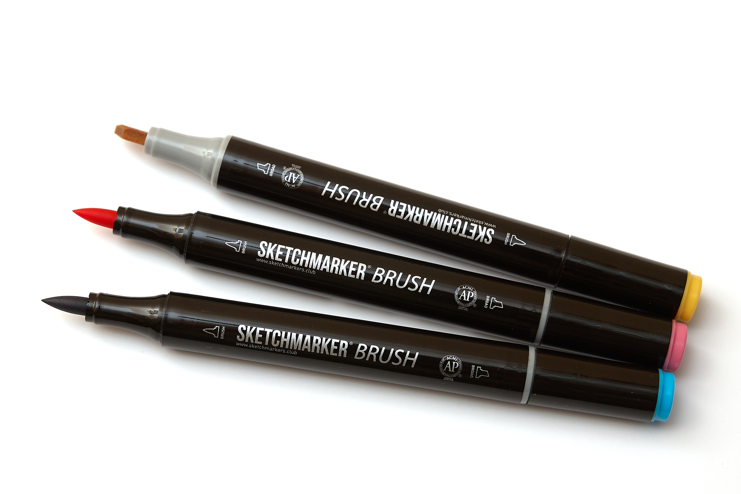 Спиртовые маркеры SKETCHMARKER Brush имеют два наконечника: «кисть» (гибкий наконечник для разного типа работ) и «долото» (для покрытия цветом больших поверхностей). Цветовая палитра серии — 300 цветов.