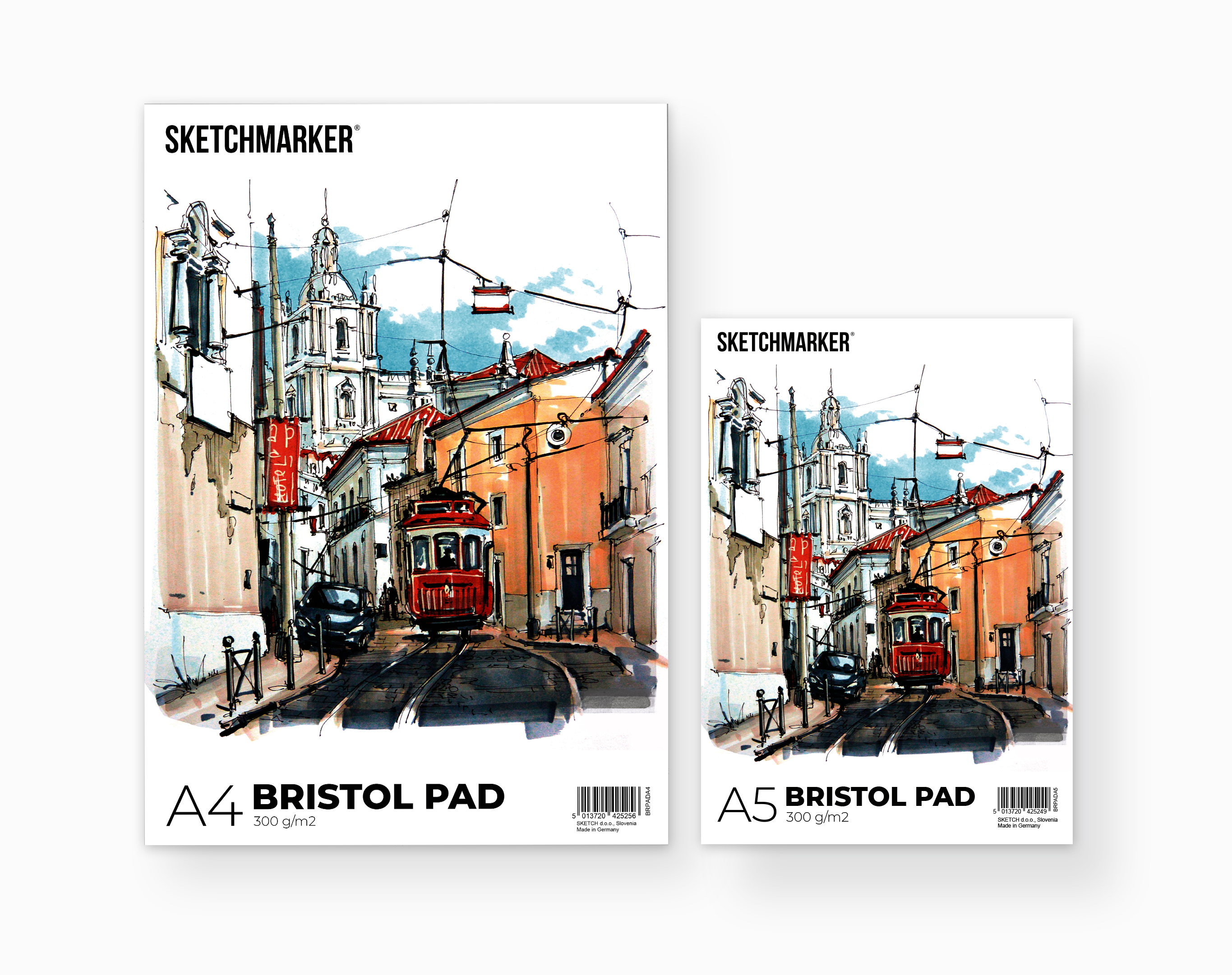 SKETCHMARKER Bristol Pad — альбомы-склейки форматов А5 и А4, с 20 листами плотностью 300 г/м². Супергладкая бумага ультра-белого цвета разработана для спиртовых маркеров, ручек, карандашей, брашпенов, туши. Выдерживает многослойное нанесение материалов.
