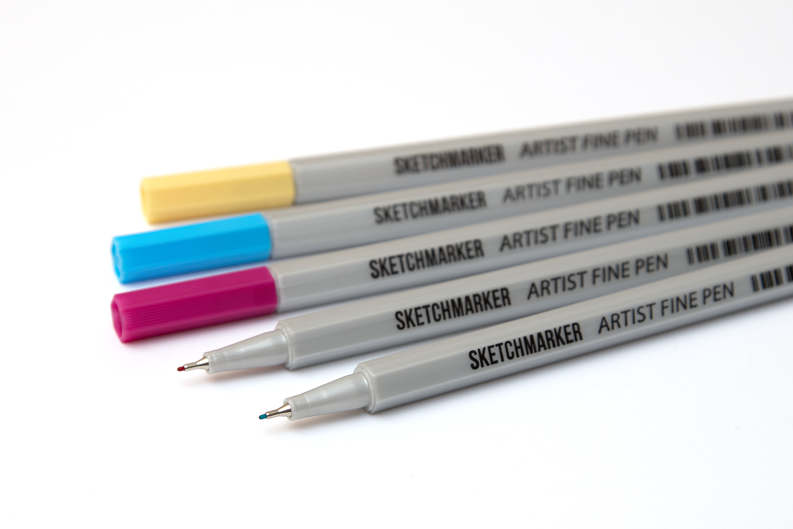Artist Fine Pen — цветные линеры SKETCHMARKER, ручки для скетчинга в эргономичном шестигранном корпусе, с пером толщиной 0,4 мм и чернилами на водной основе. Чернила быстро сохнут на бумаге, не расплываются и не проступают насквозь.